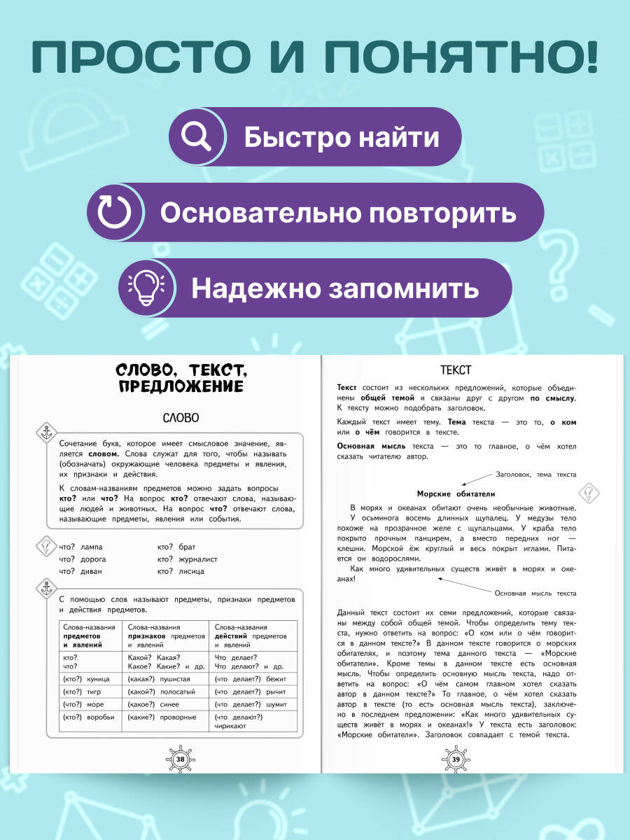Справочник предназначен для младших школьников, обучающихся по ускоренной трёхлетней программе или по индивидуальному плану, а также для преподавателей, работающих по программе «Эффективная начальная школа». Главное требование к справочникам для учеников начальных классов - краткое и понятное изложение учебного материала. В данном пособии предельно доступно, в виде таблиц, схем, правил и примеров их применения, изложен весь курс русского языка за 3 класс по программе трёхлетнего обучения. Такая подача материала позволяет быстро найти нужную учебную информацию, основательно повторить и надёжно запомнить её. Современное и удобное в использовании пособие разработано в полном соответствии с требованиями ФГОС начального общего образования.| Издательство | ООО "Издательство "Эксмо" |
