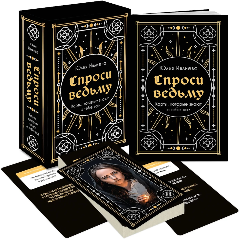 Подарочная колода «Спроси ведьму» от Юлии Ивлиевой - это ключ к разгадке тайн, источник вдохновения и мощный инструмент для самопознания. Живые карты «Спроси ведьму» - это не гадание. Это авторский метод чтения информации с твоего поля, то есть работа с твоими запросами миру. В колоде 55 карт с ответами на вопросы обо всех сферах, от любви до карьеры, от отношений с мамой до переезда в новую квартиру. Уникальный дизайн, глубокие смыслы и неиссякаемый потенциал для творчества сделают эту колоду верным спутником каждого твоего дня. Задавай даже те вопросы, на которые боишься получить ответ. Карты помогут принять правду. И никому тебя не выдадут. Эти карты - живые. Живые вопросы и ответы на них. И эти вопросы Юлии Ивлиевой в течение двух лет задавали реальные люди в социальной сети. А она передавала ответы.| Издательство | Эксмо |