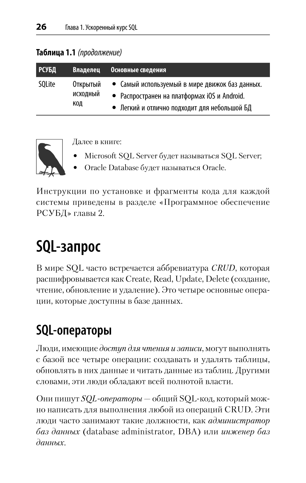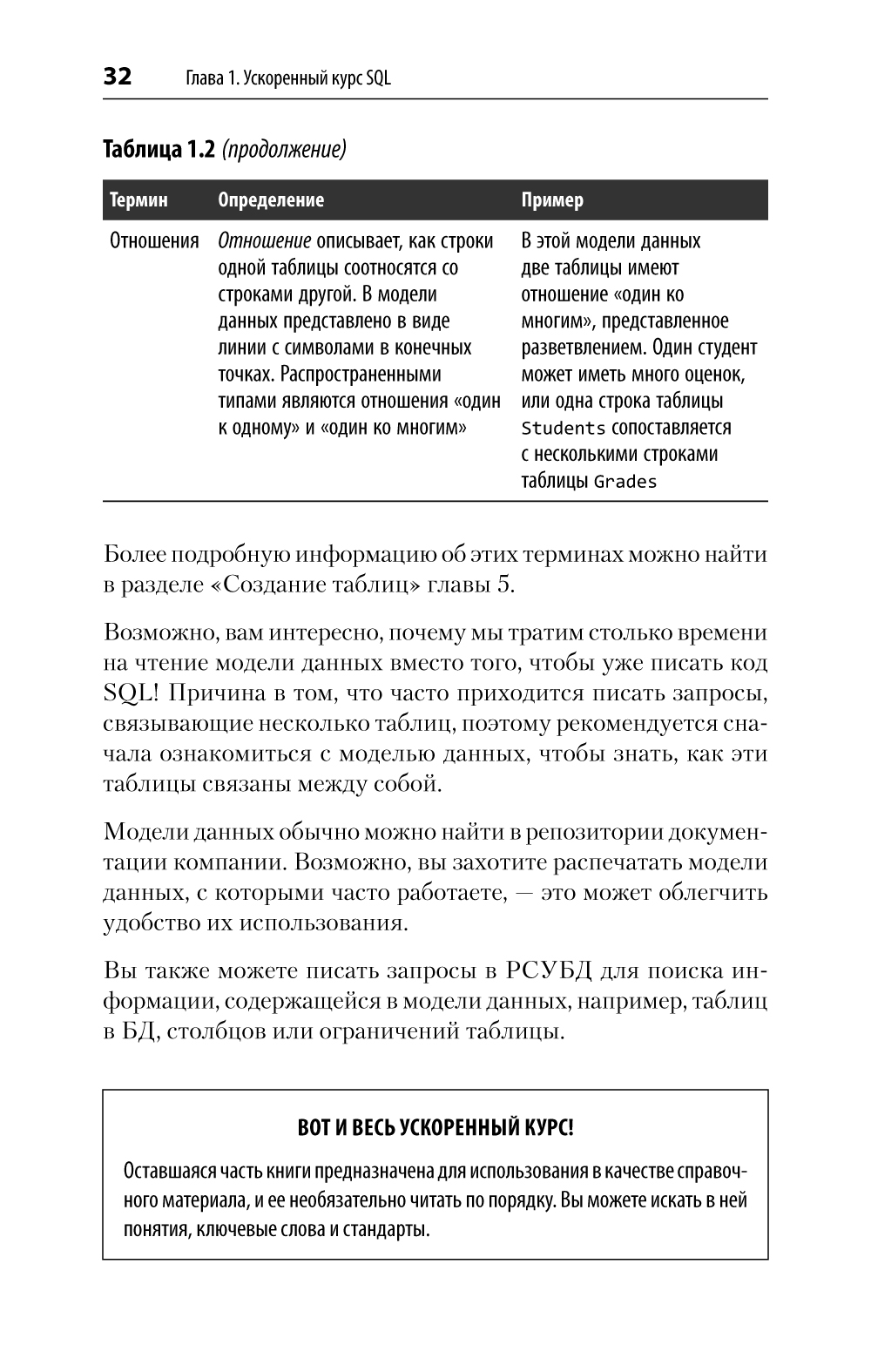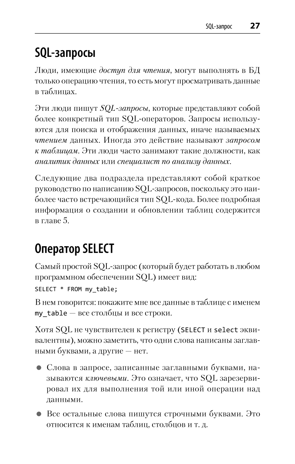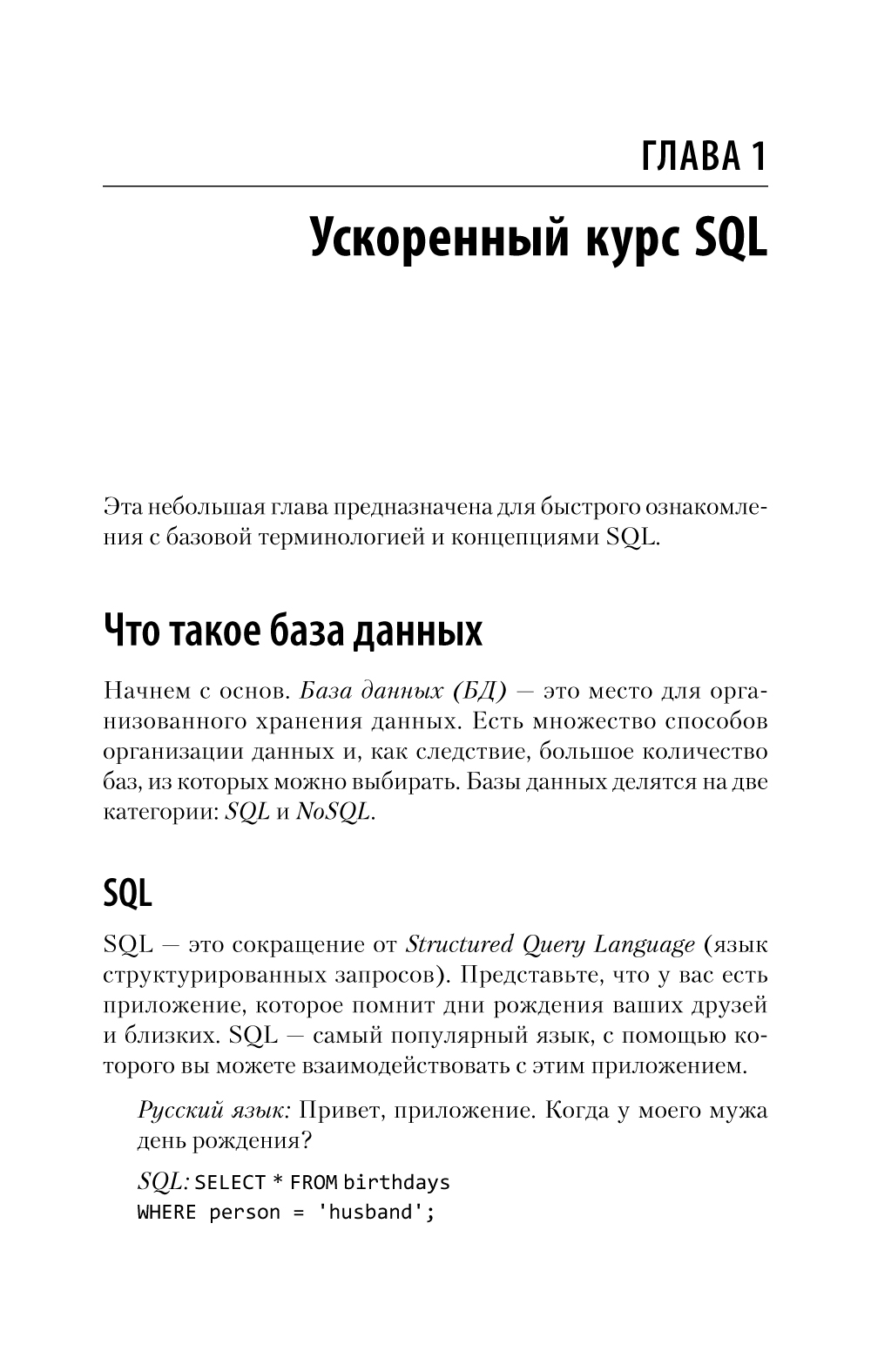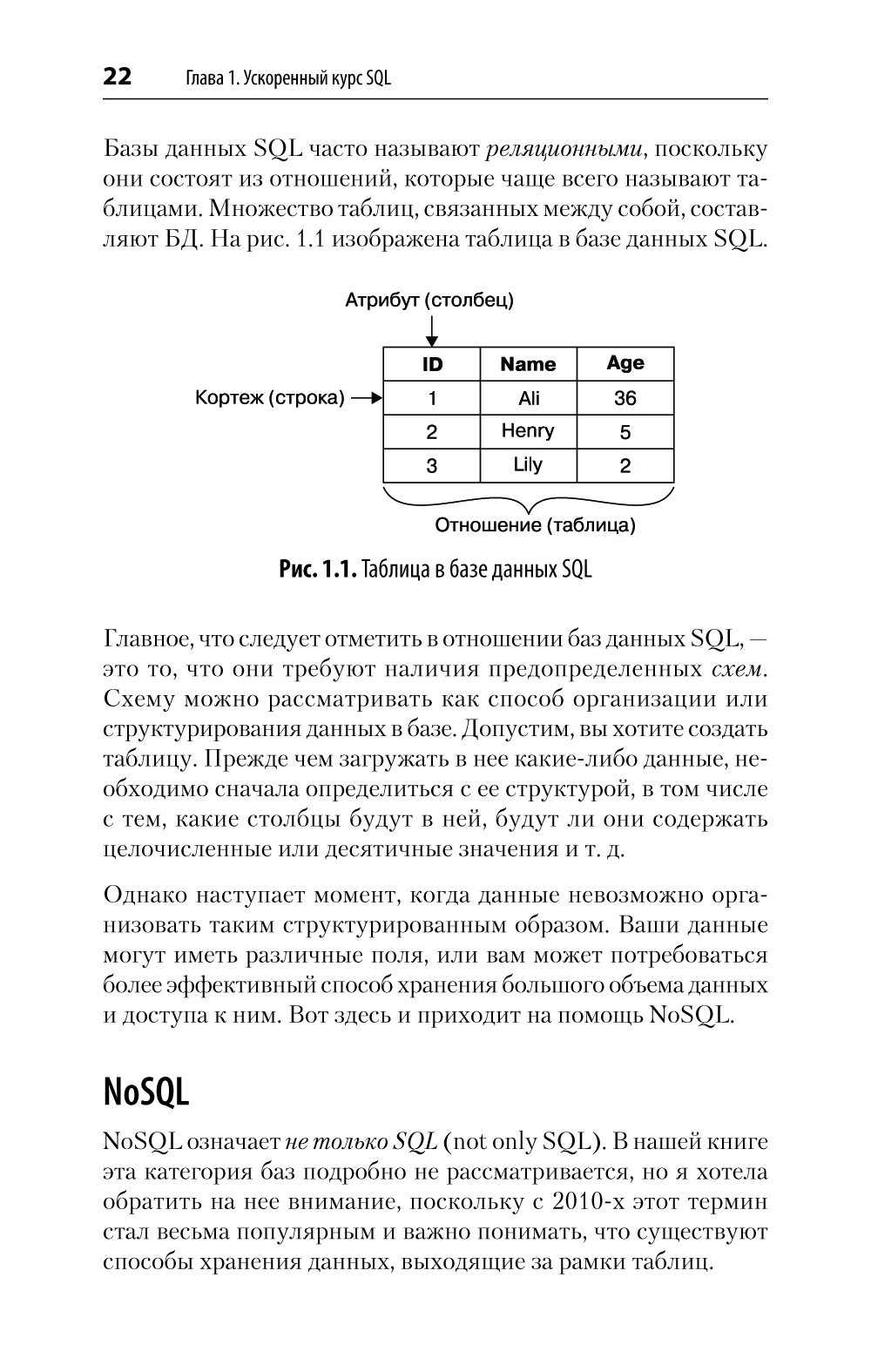 Если вы аналитик или инженер по обработке данных и используете SQL, популярный карманный справочник станет для вас идеальным помощником. Найдите множество примеров, раскрывающих все сложности языка, а также ключевые аспекты SQL при его использовании в Microsoft SQL Server, MySQL, Oracle Database, PostgreSQL и SQLite. В обновленном издании Элис Жао описывает, как в этих СУБД используется SQL для формирования запросов и внесения изменений в базу. Получите подробную информацию о типах данных и их преобразованиях, синтаксисе регулярных выражений, оконных функциях, операторах PIVOT и UNPIVOT и многом другом.| Издательство | Спринт Бук |