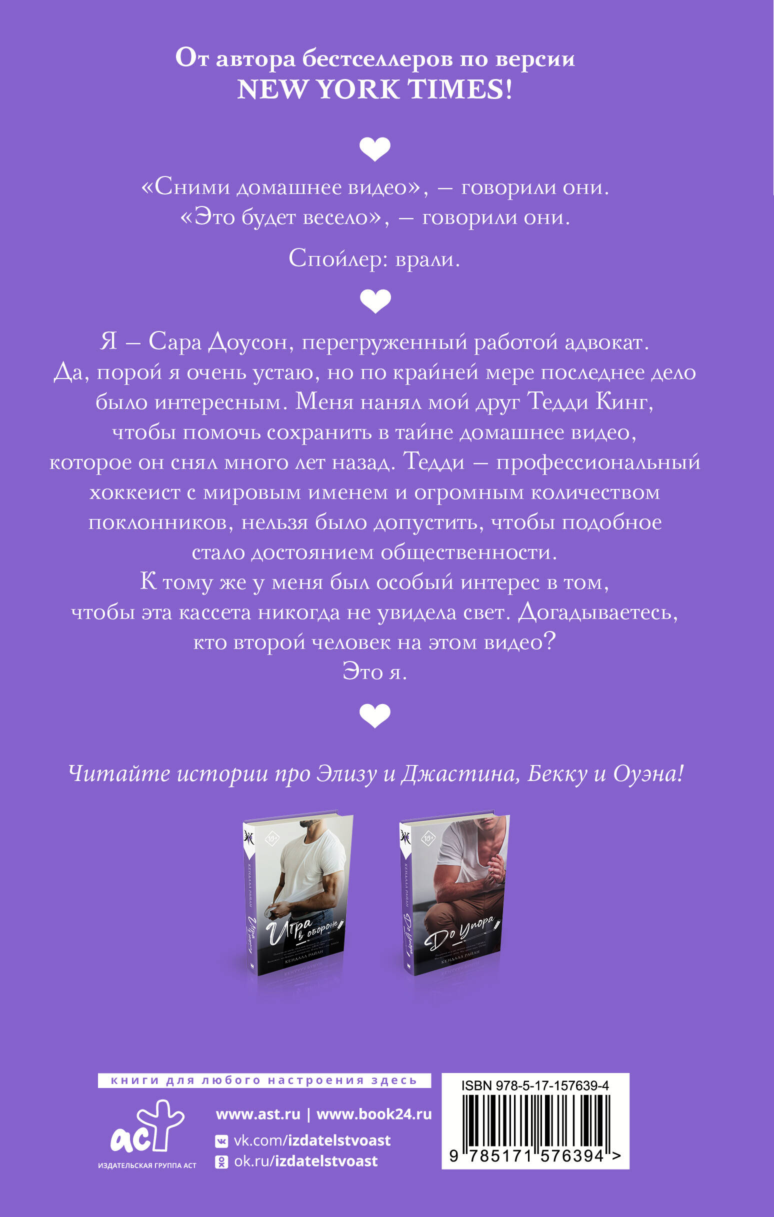 Я - Сара Доусон, перегруженный работой адвокат. Да, порой я очень устаю, но по крайней мере последнее дело было интересным. Меня нанял мой друг Тедди Кинг, чтобы помочь сохранить в тайне домашнее видео, которое он снял много лет назад. А, учитывая, что Тедди - профессиональный хоккеист с мировым именем и огромным количеством поклонников, нельзя было допустить, чтобы подобное стало достоянием общественности. К тому же у меня был особый интерес в том, чтобы эта кассета никогда не увидела свет. Догадываетесь, кто второй человек на этом видео? Это я.| Издательство | ИЗДАТЕЛЬСТВО "АСТ" |