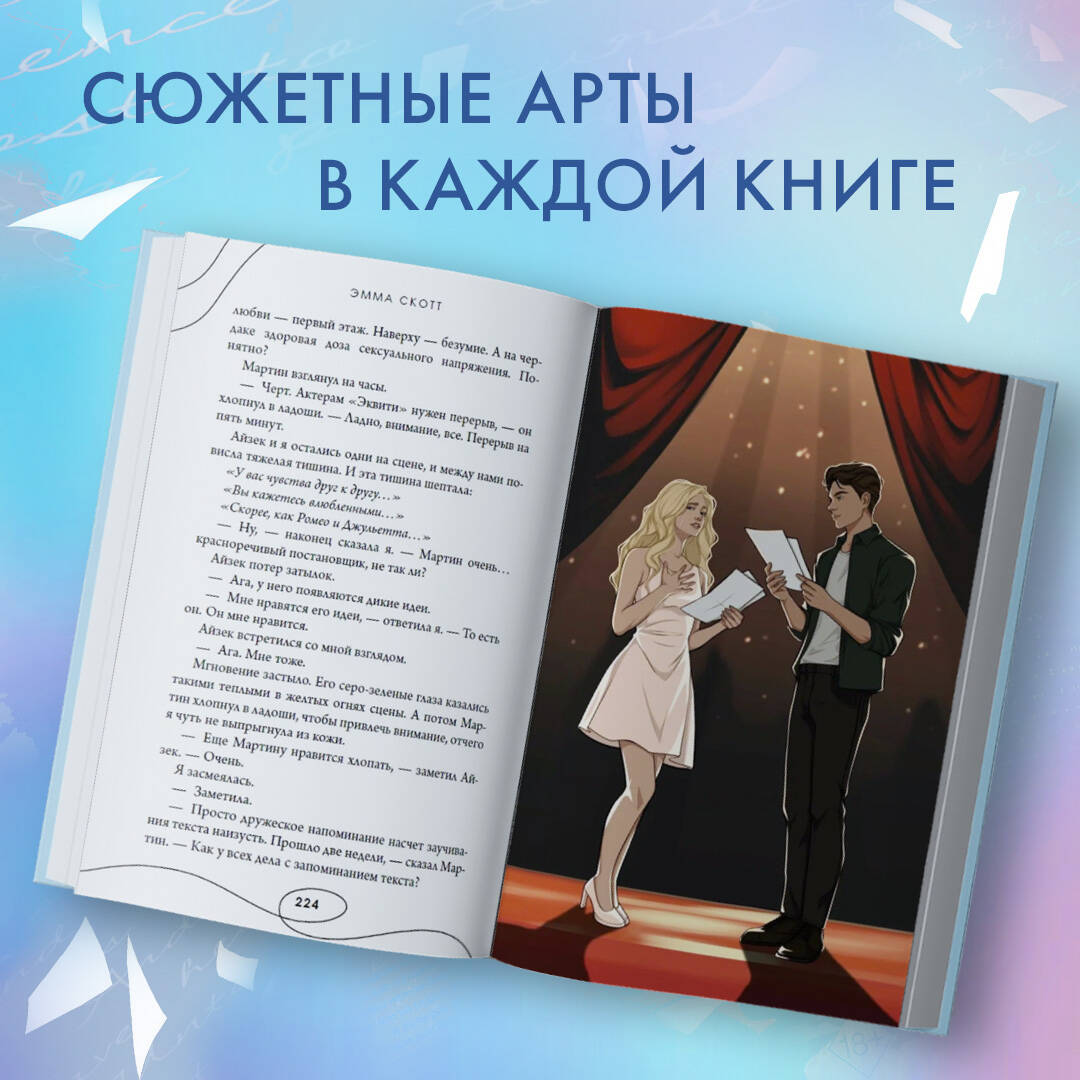 Уникальное подарочное оформление книги Эммы Скотт «Среди тысячи слов»: издание с софттач обложкой с тиснением фольгой, софттач суперобложкой с лаком, тремя цветными вклейками с артами персонажей, сюжетной страницей, ляссе с сердечком и цветной открыткой с автографом автора! Иллюстрация на суперобложке создана художницей eluvianart, внутренние иллюстрации - художницей Кирой Мори. Роман о любви в стенах любительского театра. Уиллоу пережила тяжелую душевную травму и сбегает от жизни на страницы книг. Она жаждет получить роль в театре города Хармони, чтобы изгнать своих демонов и обрести спокойствие. Айзек же всегда мечтал обрести свой собственный голос и уехать прочь из этого города. Пока не встречает Уиллоу. Вместе им предстоит сыграть главные роли в пьесе Шекспира «Гамлет». Эмоции, которые проживут на сцене Айзек и Уиллоу, станут отражением их чувств друг к другу. Смогут ли они быть вместе, когда весь мир настроен против них? Книга станет незаменимым источником поддержки для всех, кто пережил эмоциональное или физическое насилие. А строки Шекспира помогут обрести свой внутренний голос и силу, побеждающую все травмы и боль.| Издательство | ООО "Издательство "Эксмо" |
