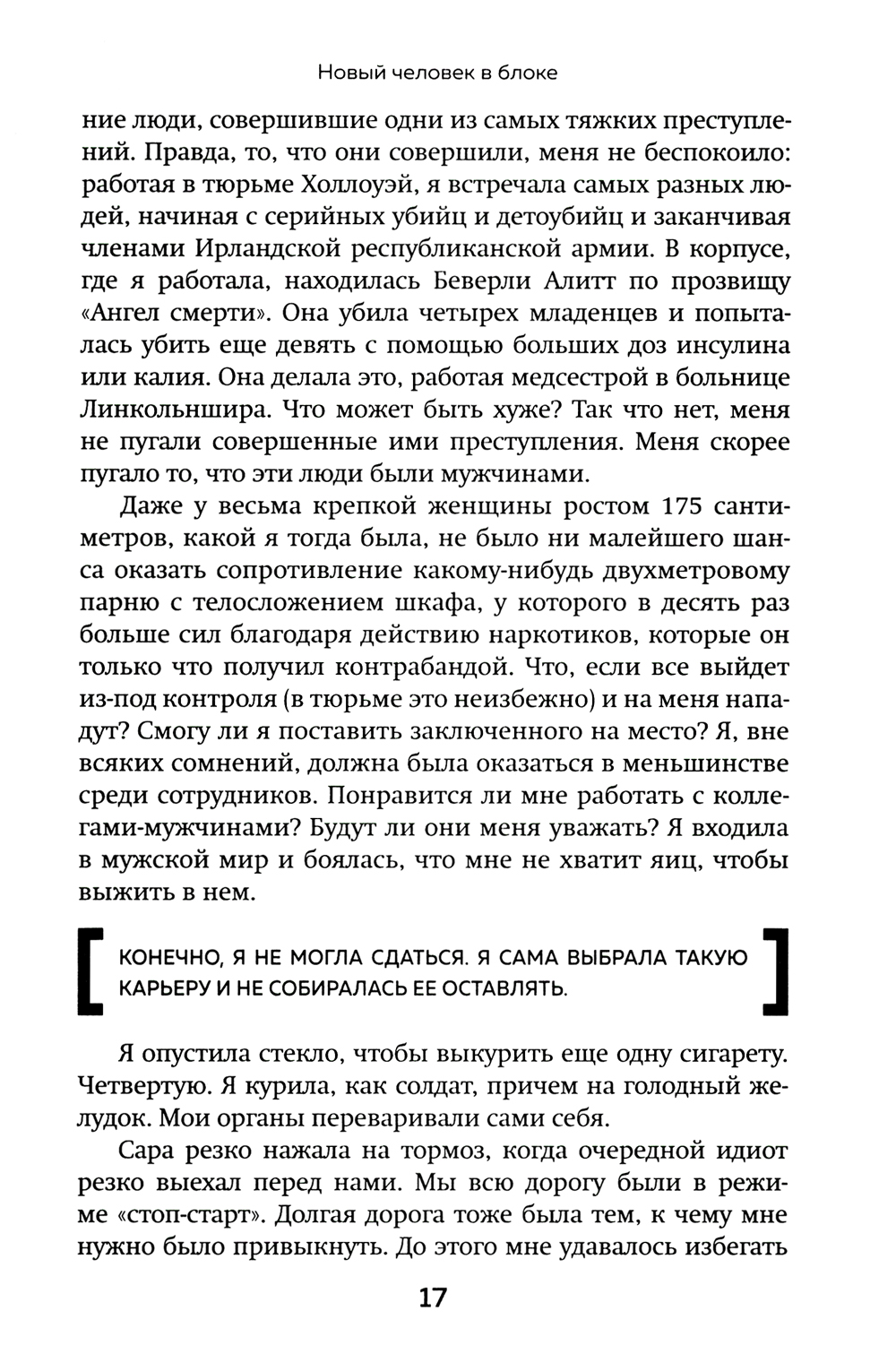 Надзирательницу Ванессу Фрейк после многих лет службы в женской колонии переводят в мужскую тюрьму. Так она начинает работу с осужденными на пожизненный срок. Ей придется столкнуться с ненавистью, угрозами, садизмом, жестокостью и безмерным эгоизмом. Вы узнаете, каково это жить, когда тебя каждый день проверяют на прочность. Героиня этой книги не просто женщина с железными нервами, а тонко чувствующий людей психолог и настоящий миротворец, которая смогла завоевать уважение среди тех, кто плюет на закон и общественные нормы.| Издательство | Эксмо |