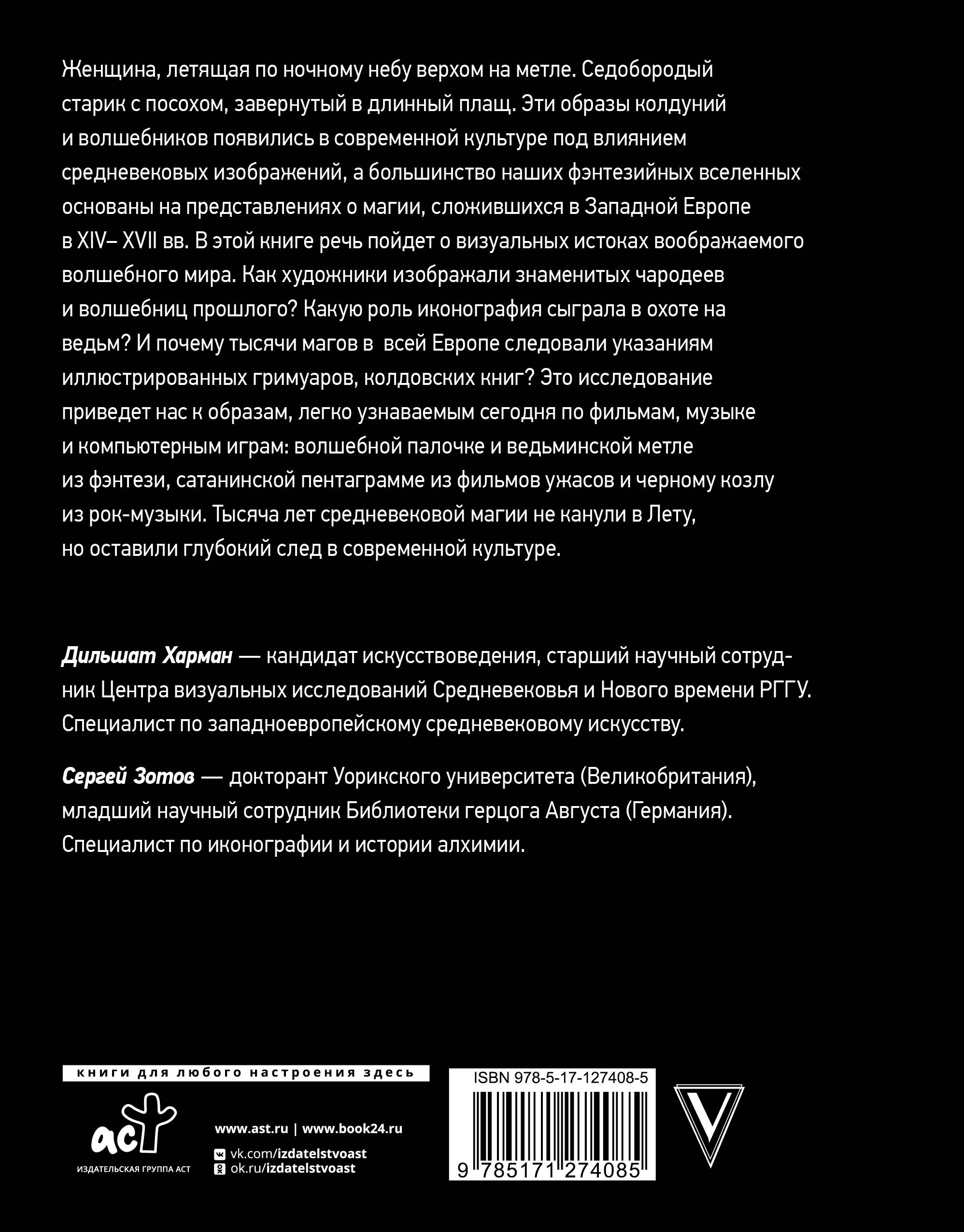 Женщина, летящая по ночному небу верхом на метле. Седобородый старик с посохом, завернутый в длинный плащ. Эти образы колдуний и волшебников появились в современной культуре под влиянием средневековых изображений - а большинство наших фэнтезийных вселенных основаны на представлениях о магии, сложившихся в Западной Европе в XIV-XVII вв. В этой книге речь пойдет о визуальных истоках воображаемого волшебного мира. Как художники изображали знаменитых чародеев и волшебниц прошлого? Какую роль иконография сыграла в охоте на ведьм? И почему тысячи магов по всей Европе следовали указаниям иллюстрированных гримуаров, колдовских книг? Это исследование приведет нас к образам, легко узнаваемым сегодня по фильмам, музыке и компьютерным играм: волшебной палочке и ведьминской метле из фэнтези, сатанинской пентаграмме из фильмов ужасов и черному козлу из рок-музыки. Тысяча лет средневековой магии не канули в лету, но оставили глубокий след в современной культуре.