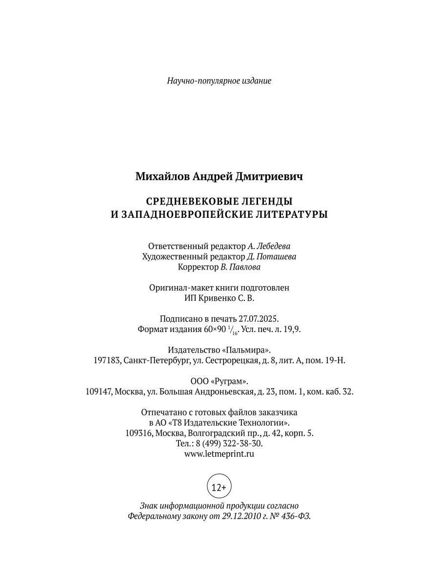 Аннотация: Средневековые легенды и западноевропейские литературы