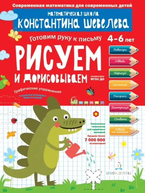 Графические диктанты Констатина Шевелева вот уже много лет входят в первую десятку книжных рейтингов в сегменте пособий по развитию математических способностей дошкольников. Новое издание его знаменитых упражнений наверняка привлечет тех родителей, которые хотят получить от занятий стопроцентный результат. Системно, понятно, увлекательно - три главных составляющих успеха этих красочных пособий. В каждой тетрадке - приятный бонус для маленьких математиков: страничка-черновичок, на которой малыш может тренироваться столько, сколько захочет. Шевелев Константин Валерьевич - педагог высшей категории, разработчик авторской образовательной программы «Математика для дошкольников". Новые тетради Константина Шевелева адресованы новому поколению детей и родителей. В них стало больше игровых заданий и ярких рисунков, но неизменными остались уникальные авторские методики и технологии. Задания в тетрадях разнообразны, их не скучно выполнять.