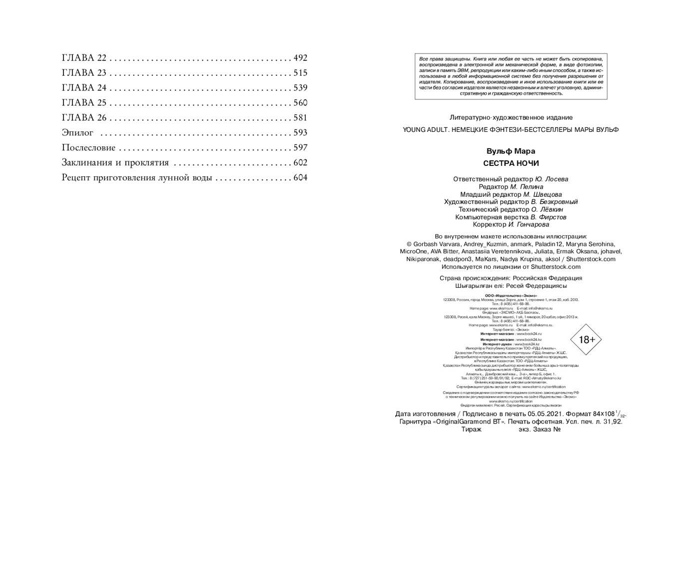 Мара Вульф - автор немецких бестселлеров, чей цикл «Ангельская сага» уже завоевал сердца российских читателей. Книги Мары Вульф проданы в Германии тиражом более 2,5 млн экземпляров! Все романы серии стали бестселлерами авторитетного издательского журнала «Der Spiegel». Роман «Сестра ночи» - это завершающая часть трилогии о противостоянии ведьм и демонов, которые обладают уникальной магией, не имеющей границ. Последнее приключение с полюбившимися героями. Три сестры, три силы, одна цель - спасти мир и обеспечить будущее без войны. Помимо ведьм, демонов и других магических существ, вас ждет встреча с новыми персонажами… но на чьей стороне будут они? На страницах романа присутствуют иллюстрации Carolin Liepins - талантливой немецкой художницы и дизайнера. Именно она работала над оформлением обложек для трилогии «Ангельская сага» и романа «Тысяча жизней подряд». А также для серии книг «Изара» Юлии Диппель. «Достойный финал. В этой серии есть всё, что заставляет сердце биться чаще». - Lovelybooks| Издательство | ООО "Издательство "Эксмо" |