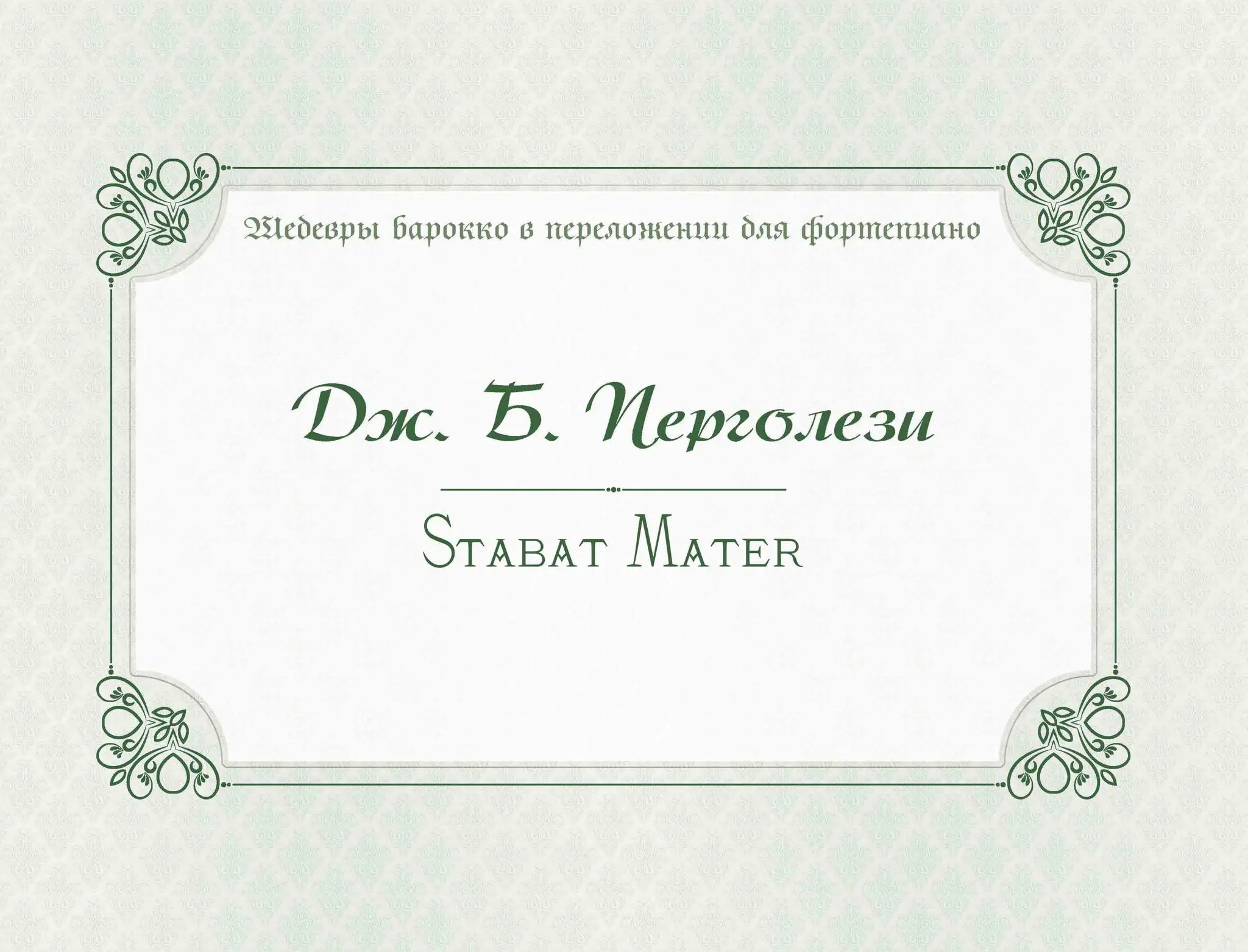 Stabat Mater : P. 77 фортепианная транскрипция, вступительная статья и комментарии Морозова