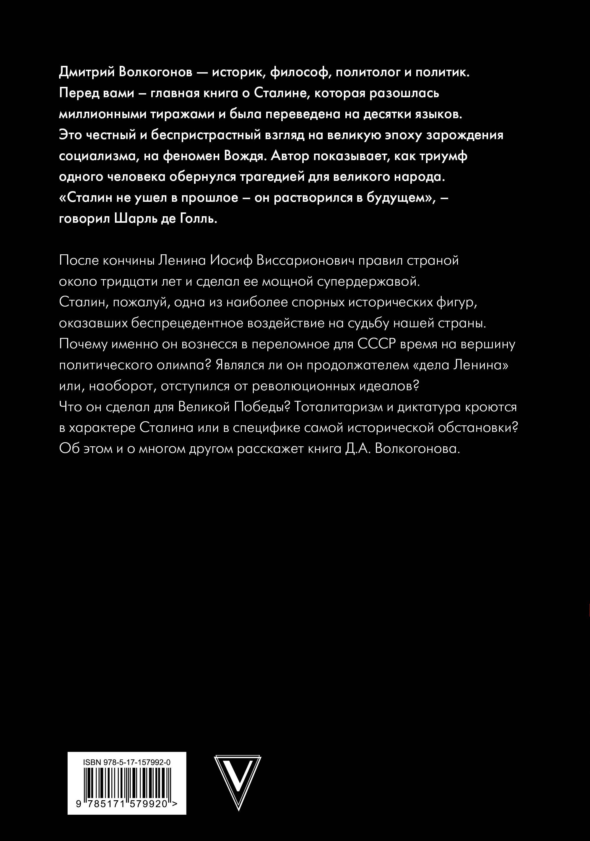 Дмитрий Волкогонов - историк, философ, политолог и политик. Перед вами - главная книга о Сталине, которая разошлась миллионными тиражами и была переведена на десятки языков. Это честный и беспристрастный взгляд на великую эпоху зарождения социализма, на феномен Вождя. Автор показывает, как триумф одного человека обернулся трагедией для великого народа. "Сталин не ушел в прошлое - он растворился в будущем", - говорил Шарль де Голль. После кончины Ленина Иосиф Виссарионович правил страной около тридцати лет и сделал ее мощной супердержавой. Сталин, пожалуй, одна из наиболее спорных исторических фигур, оказавших беспрецедентное воздействие на судьбу нашей страны. Почему именно он вознесся в переломное для СССР время на вершину политического олимпа? Являлся ли он продолжателем "дела Ленина" или, наоборот, отступился от революционных идеалов? Что он сделал для Великой Победы? Тоталитаризм и диктатура кроются в характере Сталина или в специфике самой исторической обстановки? Об этом и о многом другом расскажет книга Д.А. Волкогонова.| Издательство | ИЗДАТЕЛЬСТВО "АСТ" |
