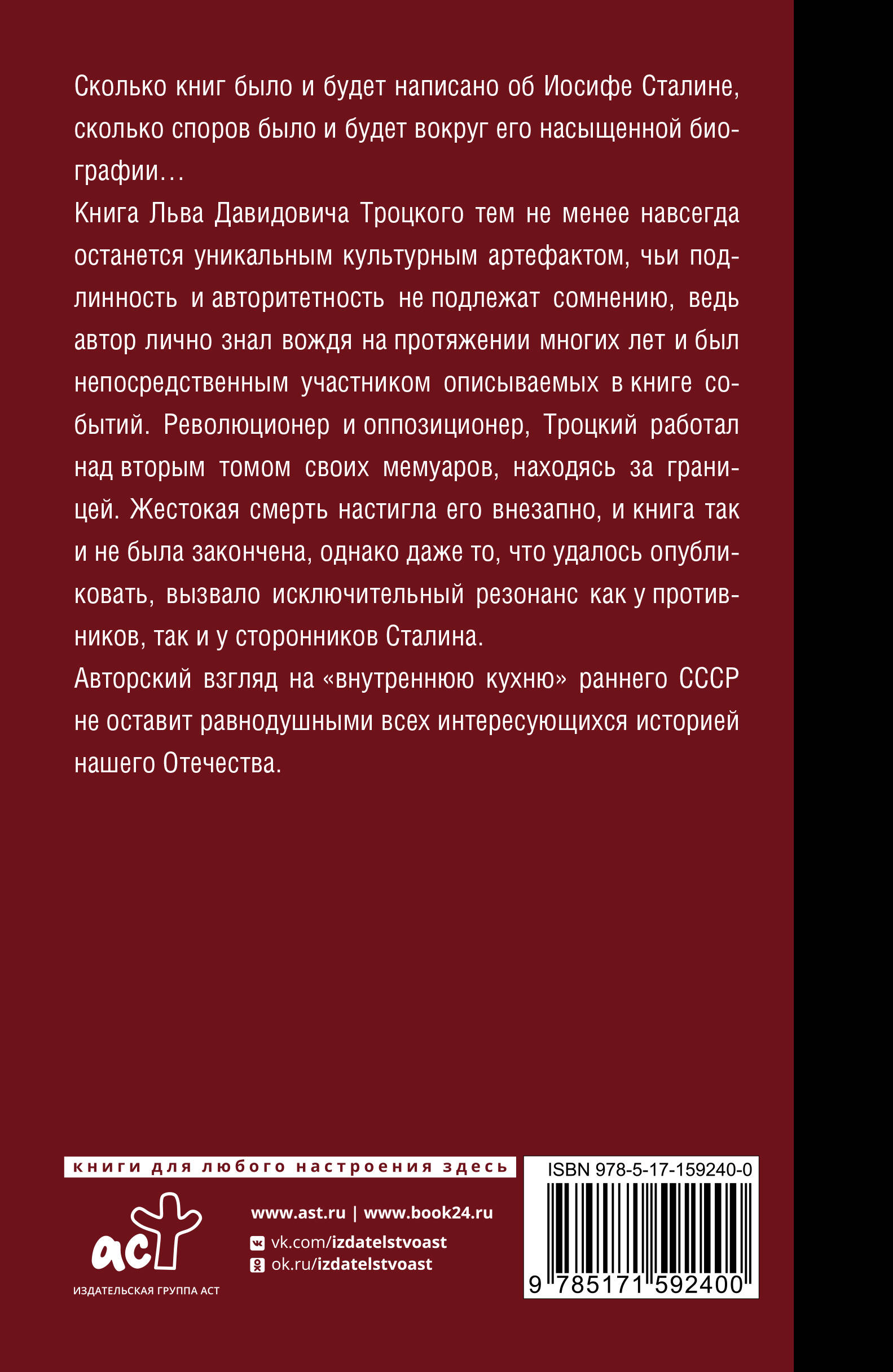 Лев Давидович Троцкий - революционер и оппозиционер, лично знавший вождя на протяжении многих лет и был непосредственным участником описываемых в книге событий. Книга "Сталин" всегда будет уникальным культурным артефактом, чья подлинность и авторитетность не поддается сомнению. Троцкий работал над вторым томом своих мемуаров, уже будучи высланным за границу. Жестокая смерть настигла его внезапно, и книга так и не была закончена, однако даже то, что удалось опубликовать, вызвало исключительный резонанс как у противников, так и сторонников Сталина. Для кого книга: • Для тех, кто любит точные исторические факты • Для тех, кто увлекается исторической публицистикой.| Издательство | Издательство "АСТ" |