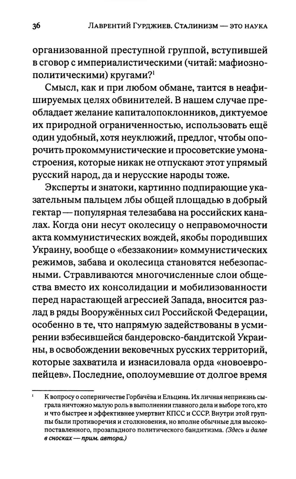 В книге утверждается, что сталинизм-неотъемлемая и органичная часть коммунистического учения. После начатой кликой Хрущёва в 1956 году борьбы с «культом личности Сталина» рассматривать вопрос в таком аспекте запрещалось. По сути, после смерти вождя вопрос в представленном автором виде поднят в нашей стране впервые. В книге исследованы теоретические составляющие сталинизма, уделено большое внимание практической стороне научного феномена, включая его неизвестные или малоизвестные ранее стороны. С опорой на марксистско-ленинско-сталинскую методологию проанализированы причины развала СССР, современная обстановка в России, международные процессы, рассмотрена философия эволюции и революции, затронуты мирские и вероисповедные проблемы. Произведение написано живым, образным языком. Содержит ряд неординарных выводов и суждений. Некоторые носят как спорный, так и подкреплённый фактами и аргументами сенсационный характер.| Издательство | Книжный мир |