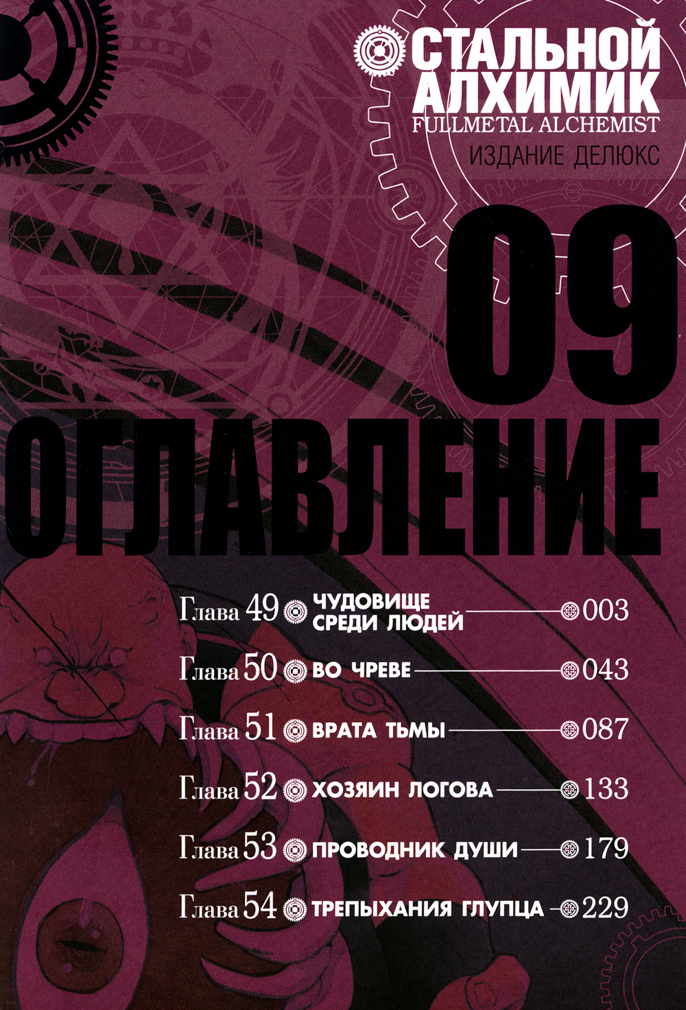 В комплект входят четыре тома (книги 9-12) манги Х. Аракавы «Стальной Алхимик». В девятом томе на фоне политических интриг в Централе, вызванных известиями об истинной натуре Кинга Брэдли, Обжорство жаждет сожрать Роя Мустанга, но закусывает в итоге не им. Проглоченные Обжорством Эд Элрик и «принц-недоумок» Лин оказываются в очень странном месте, «по колено в кровище». Раскрыть Эду глаза на истинное предназначение места готов Зависть, заодно он поделится и другими фактами. Какое же он чудовище! Победить его в истинном облике будет непросто. В это же время оставшийся один на один с Обжорством Ал требует, чтобы гомункул отвёл его к своему истинному отцу. Лицо отца станет большим сюрпризом для Элриков... В десятом томе манги отец Эда и Ала алхимик Гогенгейм явился братьям после вымотавшей их схватки с Алчностью. В его лице Элрики прочли жестокую правду: их отец связан с гомункулами и гораздо сильнее, чем можно представить. Принц Лин взглянул в глаза страшной опасности, и теперь в его зрачках Эдвард и Альфонс видят лишь тень Алчности. Шраму вновь являет свой лик жестокое прошлое Ишвара, и в его лице молодые алхимики видят не зло, но боль. Фюрер Кинг Брэдли сбросил маску мудрого начальника, и в его взгляде и словах - недвусмысленное обещание убить Винри. Во всех этих лицах читается одно: с пути уже не сойти, его надо пройти до конца. Порой просто нет выбора; как когда-то Рой Мустанг должен был отправиться в Ишвар, хотя знал, что принесет в те земли лишь смерть и разрушения... В одиннадцатом томе отряд алхимиков завершает зачистку Ишвара, Рой Мустанг вынашивает большие планы, а братья Элрик продолжают поиски Мэй и Шрама. Они могут помочь братьям понять, что случилось с их способностями к алхимии после пребывания в подземелье за Вратами. В это же время Шрам разыскивает дневники своего брата, изучавшего алхимию. В этих дневниках может содержаться секрет бессмертия. Поиски «маленькой кошатницы» приведут братьев в крепость, где командир - сестра майора Армстронга, генерал-майор Оливия Мира Армстронг! Еще более удивительное открытие о замыслах гомункулов вот-вот прорвется наружу из подземелий крепости... В двенадцатом томе Лень выполняет приказ Отца, и созданный им круг почти замкнулся. Аместрис в опасности! Багровый алхимик Кимбли и генерал-лейтенант Рэйвен прибывают в Бриггскую крепость, чтобы Оливии Армстронг сделать предложение, от которого она, как им кажется, не сможет отказаться, и с радостью перейдёт на их сторону. Результат их удивит. Братьев Элрик тоже ожидает сюрприз: Винри окажется всё в той же крепости Бриггс.
