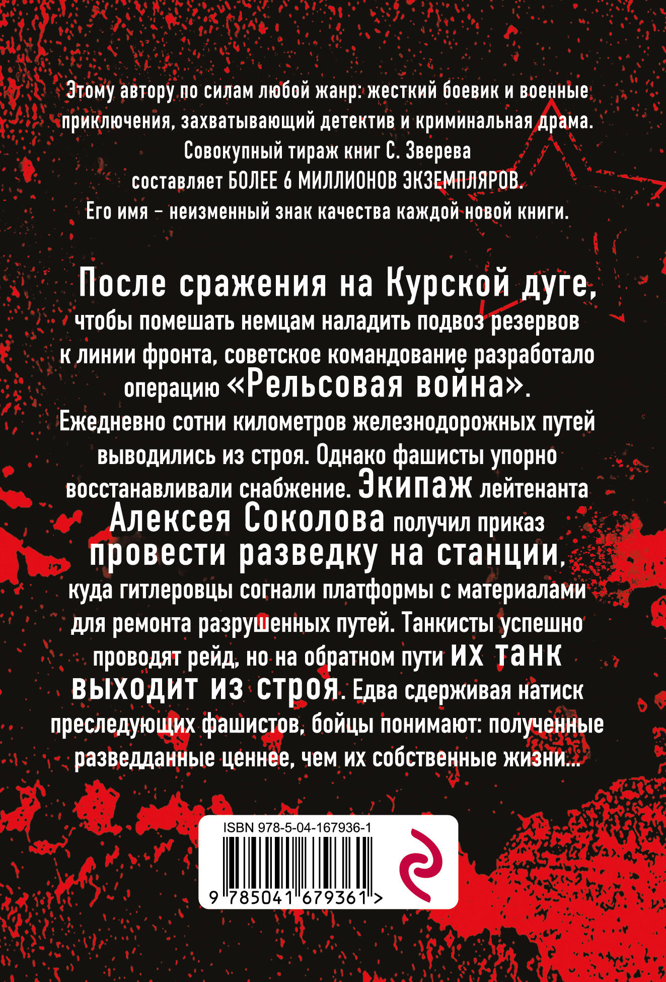 Этому автору по силам любой жанр: жесткий боевик и военные приключения, захватывающий детектив и криминальная драма. Совокупный тираж книг С. Зверева составляет более 6 миллионов экземпляров. Его имя - неизменный знак качества каждой новой книги. После сражения на Курской дуге, чтобы помешать немцам наладить подвоз резервов к линии фронта, советское командование разработало операцию «Рельсовая война». Ежедневно сотни километров железнодорожных путей выводилось из строя. Однако фашисты упорно восстанавливали снабжение. Экипаж лейтенанта Алексея Соколова получил приказ провести разведку на станции, куда гитлеровцы согнали платформы с материалами для ремонта разрушенных путей. Танкисты успешно проводят рейд, но на обратном пути их танк выходит из строя. Едва сдерживая натиск преследующих фашистов, бойцы понимают: полученные разведданные ценнее, чем их собственные жизни…| Издательство | Эксмо |