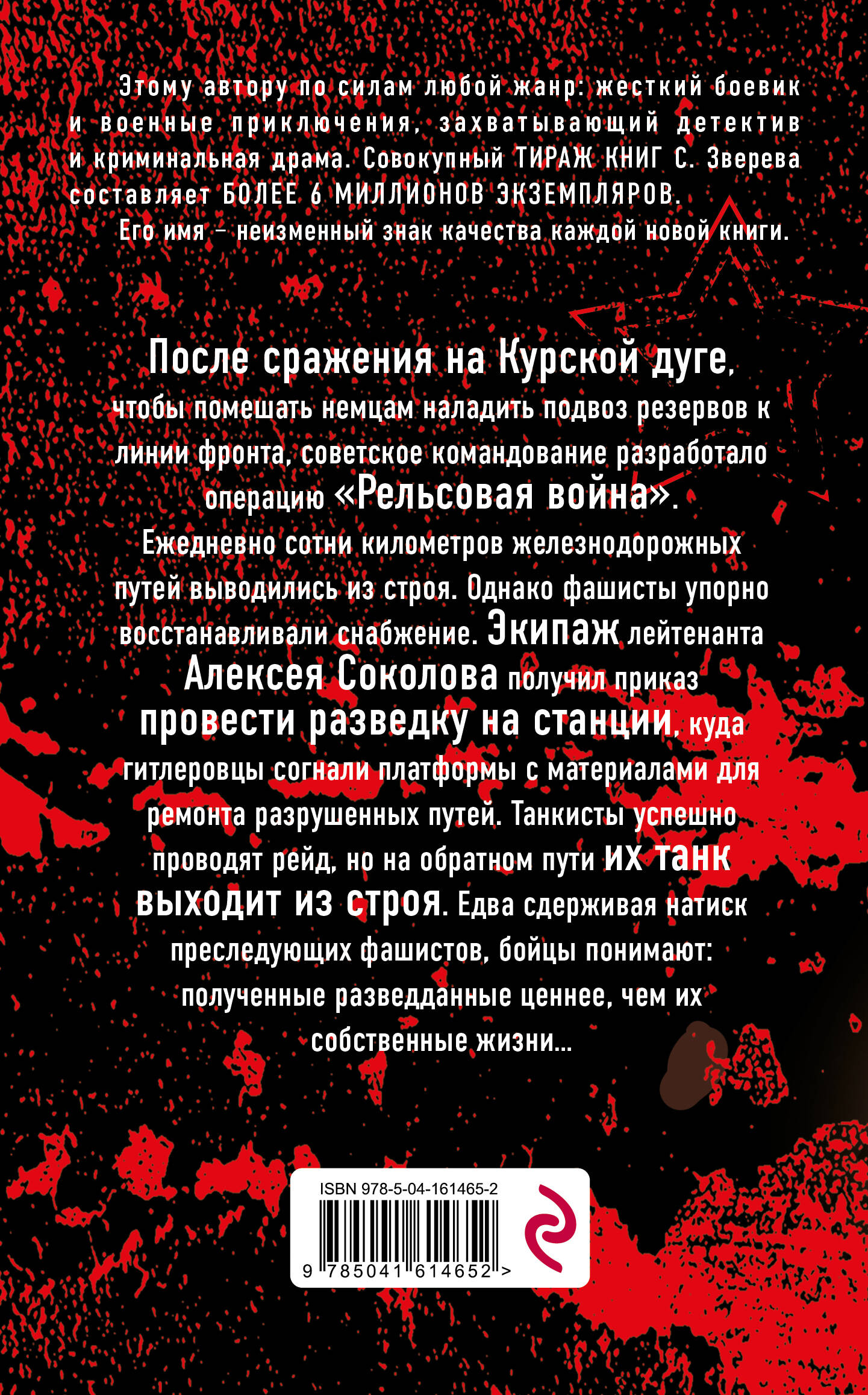 Этому автору по силам любой жанр: жесткий боевик и военные приключения, захватывающий детектив и криминальная драма. Совокупный тираж книг С. Зверева составляет более 6 миллионов экземпляров. Его имя - неизменный знак качества каждой новой книги. После сражения на Курской дуге, чтобы помешать немцам наладить подвоз резервов к линии фронта, советское командование разработало операцию «Рельсовая война». Ежедневно сотни километров железнодорожных путей выводилось из строя. Однако фашисты упорно восстанавливали снабжение. Экипаж лейтенанта Алексея Соколова получил приказ провести разведку на станции, куда гитлеровцы согнали платформы с материалами для ремонта разрушенных путей. Танкисты успешно проводят рейд, но на обратном пути их танк выходит из строя. Едва сдерживая натиск преследующих фашистов, бойцы понимают: полученные разведданные ценнее, чем их собственные жизни…| Издательство | ООО "Издательство "Эксмо" |