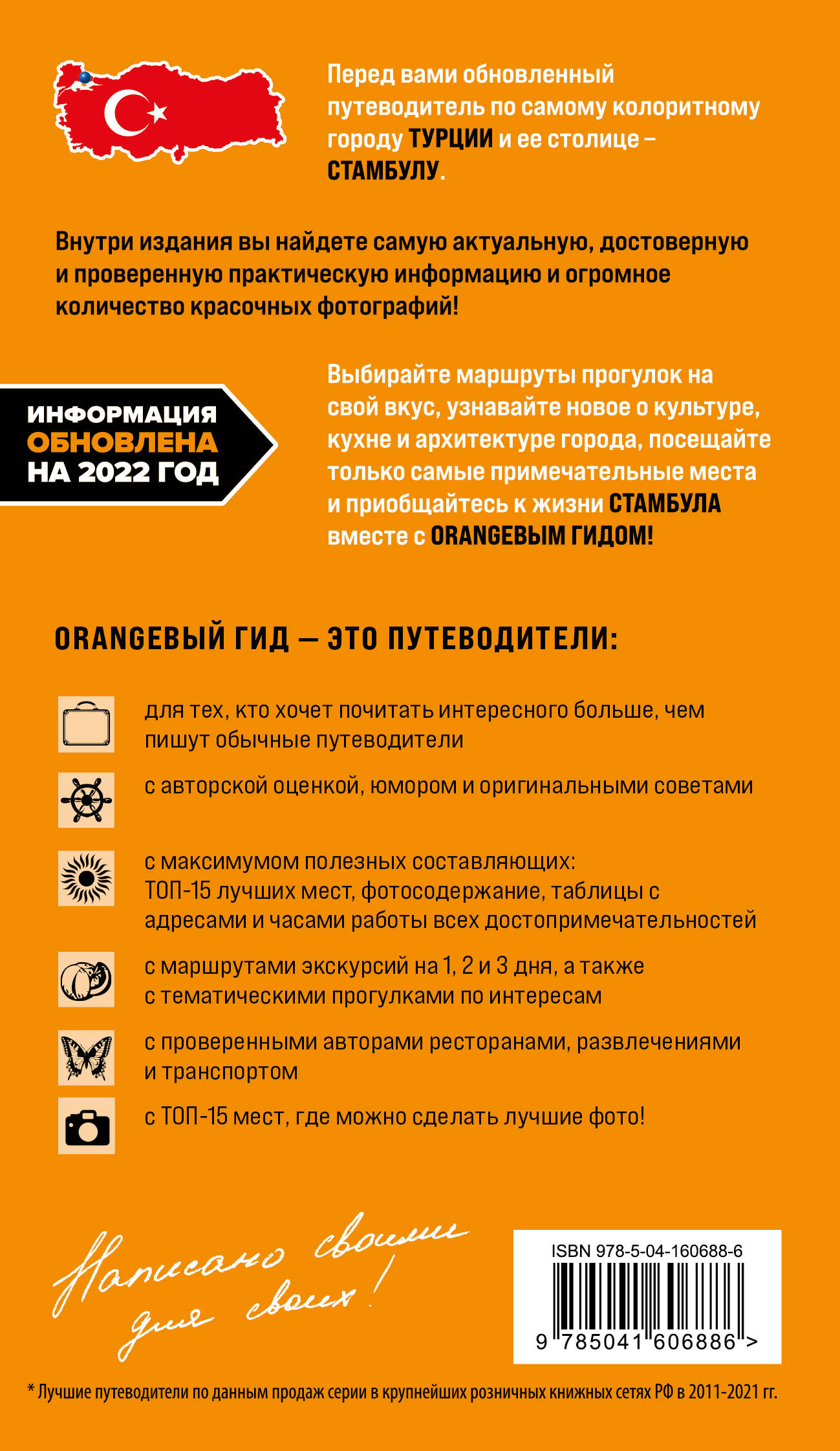 Путеводитель знаменитой серии «Оранжевый гид» по Стамбулу! Только актуальная информация, маршруты прогулок, интересные факты, красочные фотографии - все для того, чтобы вы могли спланировать свое идеальное путешествие в Стамбул! Информация обновлена и актуализирована в 2022 году.| Издательство | Эксмо |