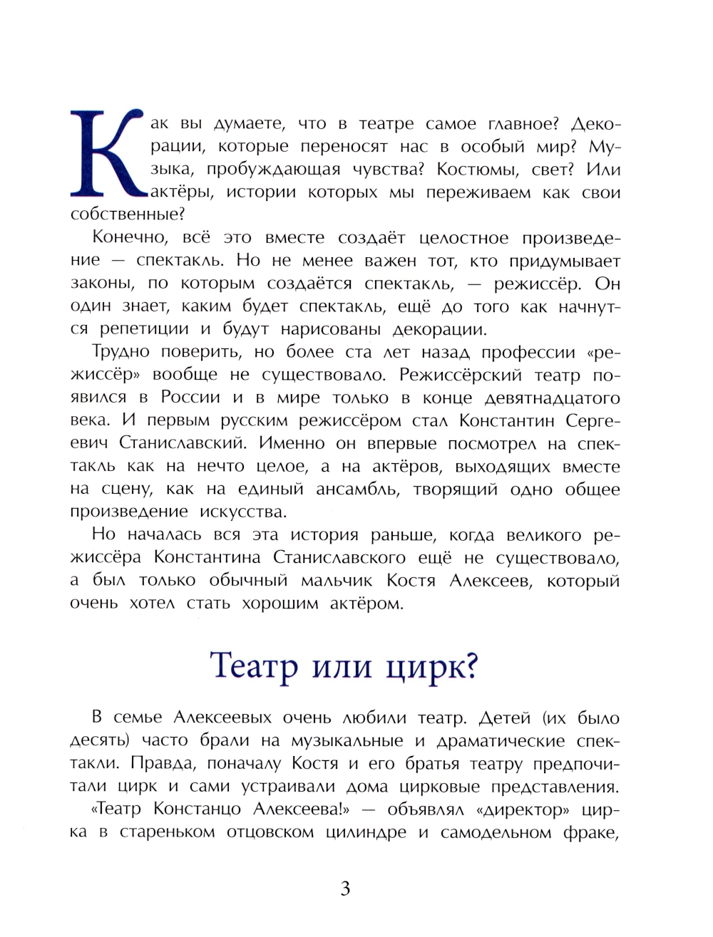 Маленький мальчик Костя мечтает стать актёром, а станет первым русским режиссёром тогда, когда даже не существовало такой профессии. Он изобретёт театр, который теперь во всем мире называют театром Станиславского.| Издательство | Настя и Никита |