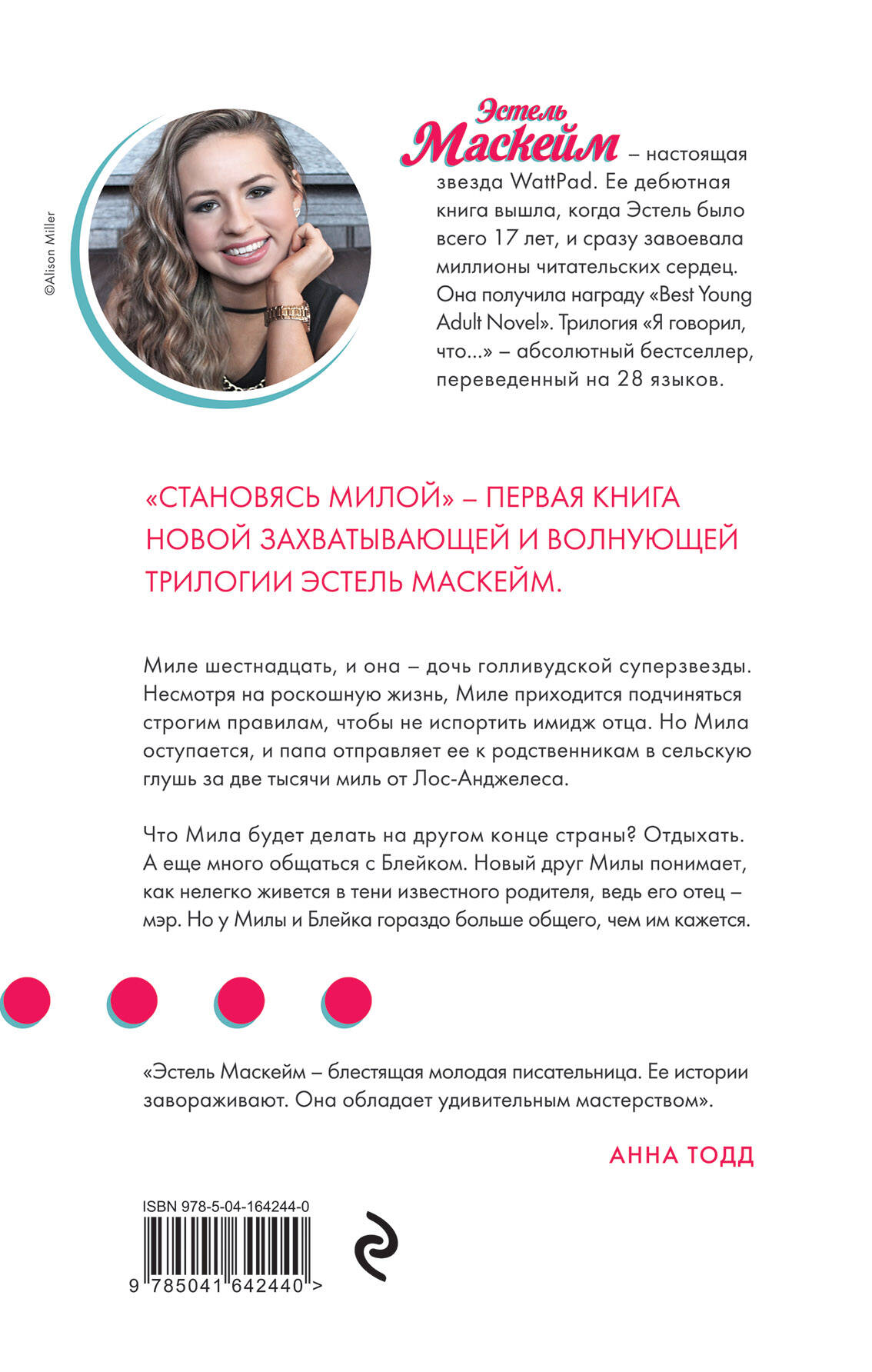 «Становясь Милой» - первая книга нового захватывающего и волнующего цикла Эстель Маскейм, автора трилогии «Я говорил, что…». Миле шестнадцать, и она - дочь голливудской суперзвезды. Несмотря на роскошную жизнь, Миле приходится подчиняться строгим правилам, чтобы не испортить имидж отца. Но Мила оступается, и папа отправляет ее к родственникам в сельскую глушь за две тысячи миль от Лос-Анджелеса. Что Мила будет делать на другом конце страны? Отдыхать. А еще много общаться с Блейком. Новый друг Милы понимает, как нелегко живется в тени известного родителя, ведь его отец - мэр. Но у Милы и Блейка гораздо больше общего, чем им кажется. «Эстель Маскейм - блестящая молодая писательница. Ее истории завораживают. Она обладает удивительным мастерством». - АННА ТОДД| Издательство | Эксмо |