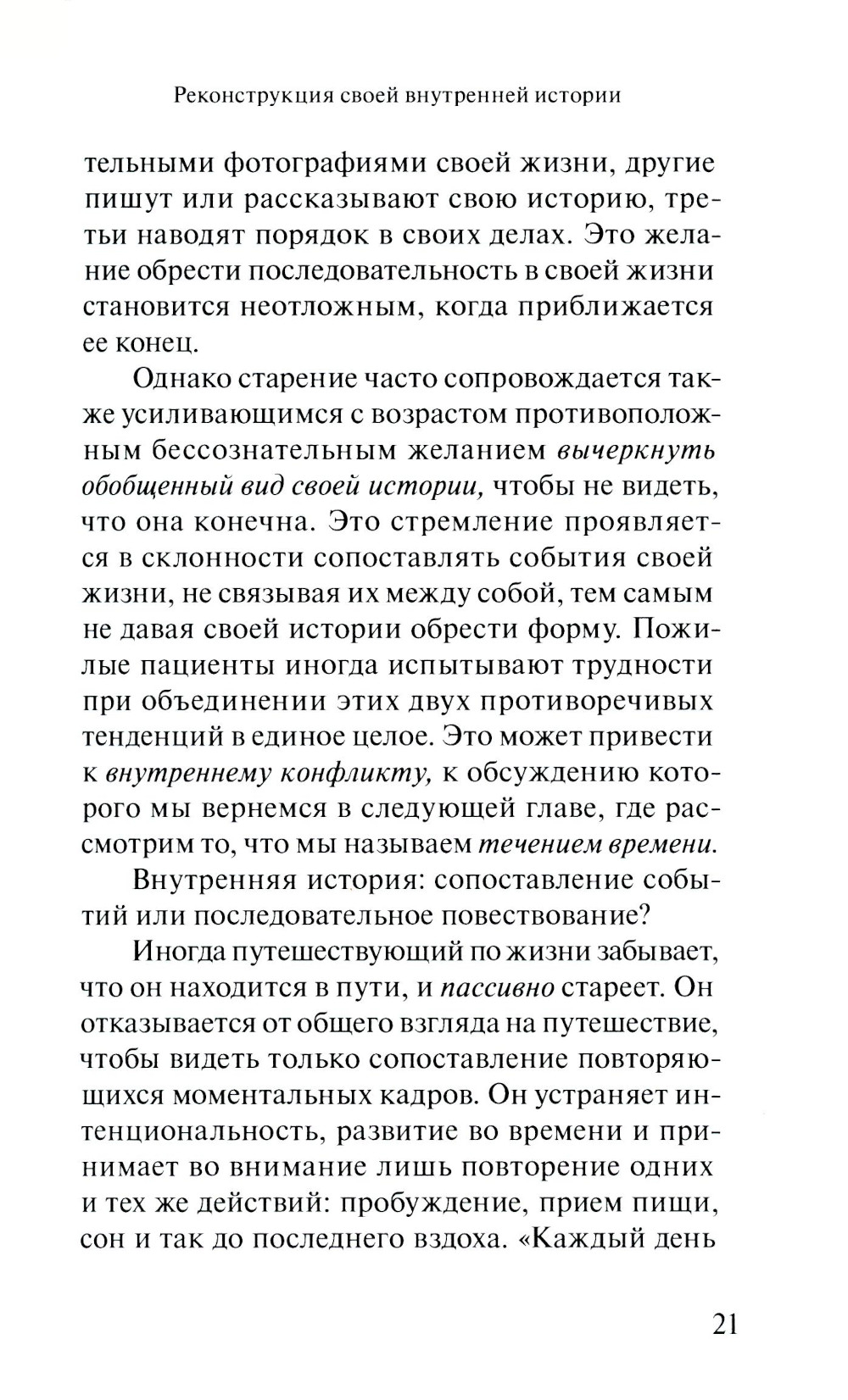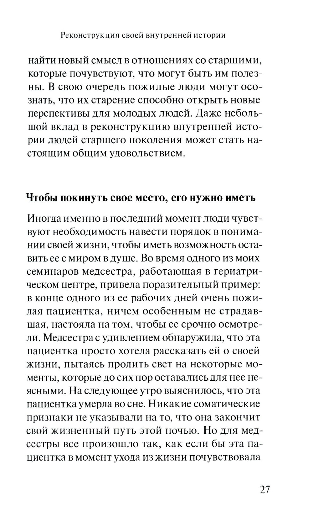Есть так много способов стареть! Старение может внушать страх потери и недееспособности, смерти близких. Однако есть люди, вызывающие желание стареть. Их не щадило время, но для них старение означает продолжение жизненного приключения. Кажется, что они сохраняют утраченное внешнее богатство в виде богатства внутреннего мира и даже открывают новые грани свободы. Достигнув черты, смогут ли они, потеряв все, не потерять при этом себя? Что, если бы старость стала для них возможностью научиться лучше любить себя и друг друга? Автор имеет большой опыт клинической работы в области психоанализа и психотерапии пожилых людей, который она передает посредством супервизий и семинаров. Она ждала свой преклонный возраст, чтобы иметь возможность со знанием дела подчеркнуть богатство старости и восстановить ее благородство.| Издательство | Когито-Центр |
