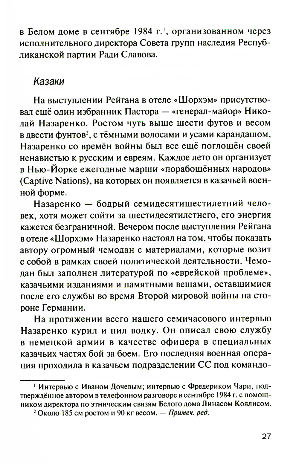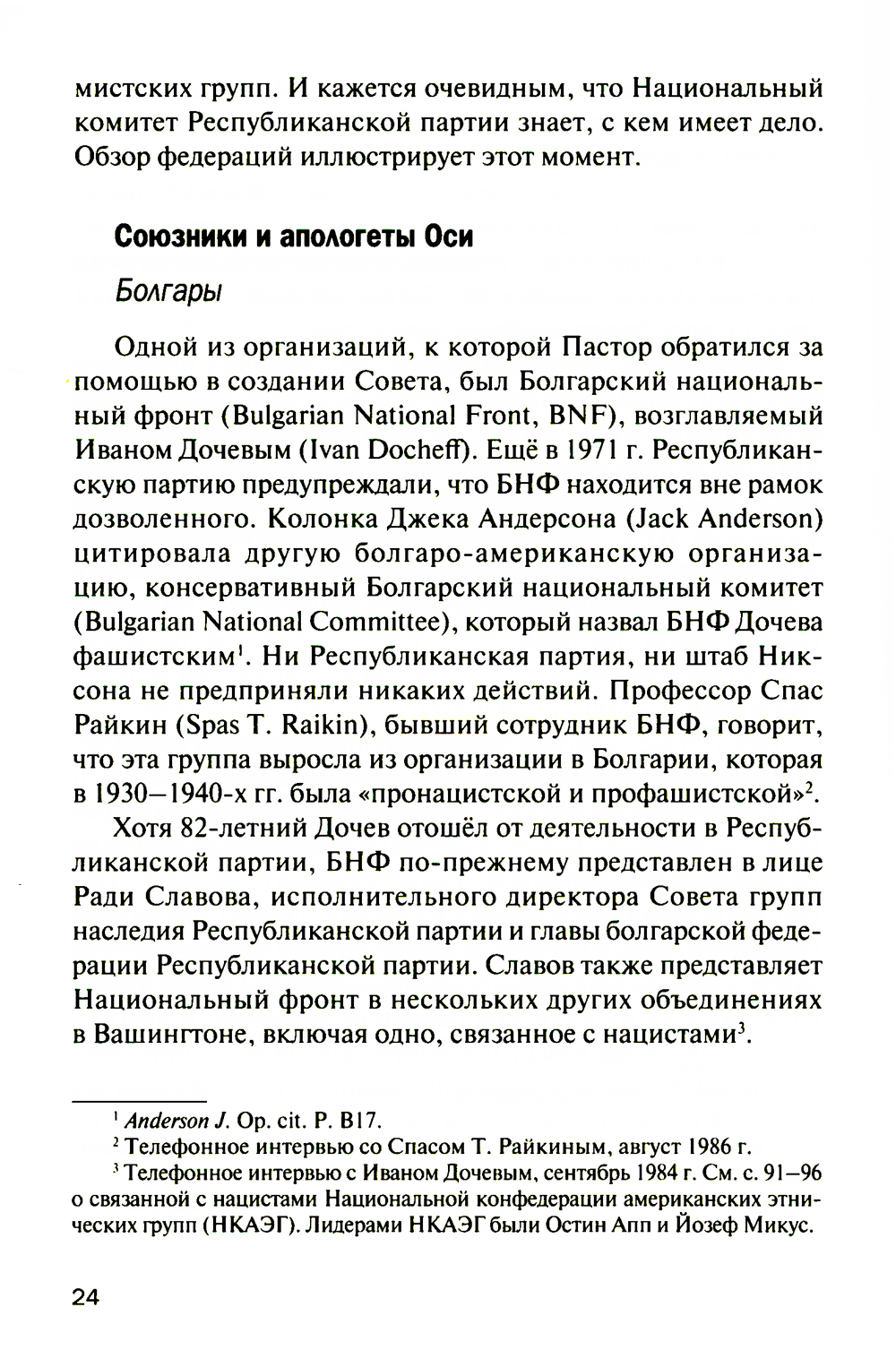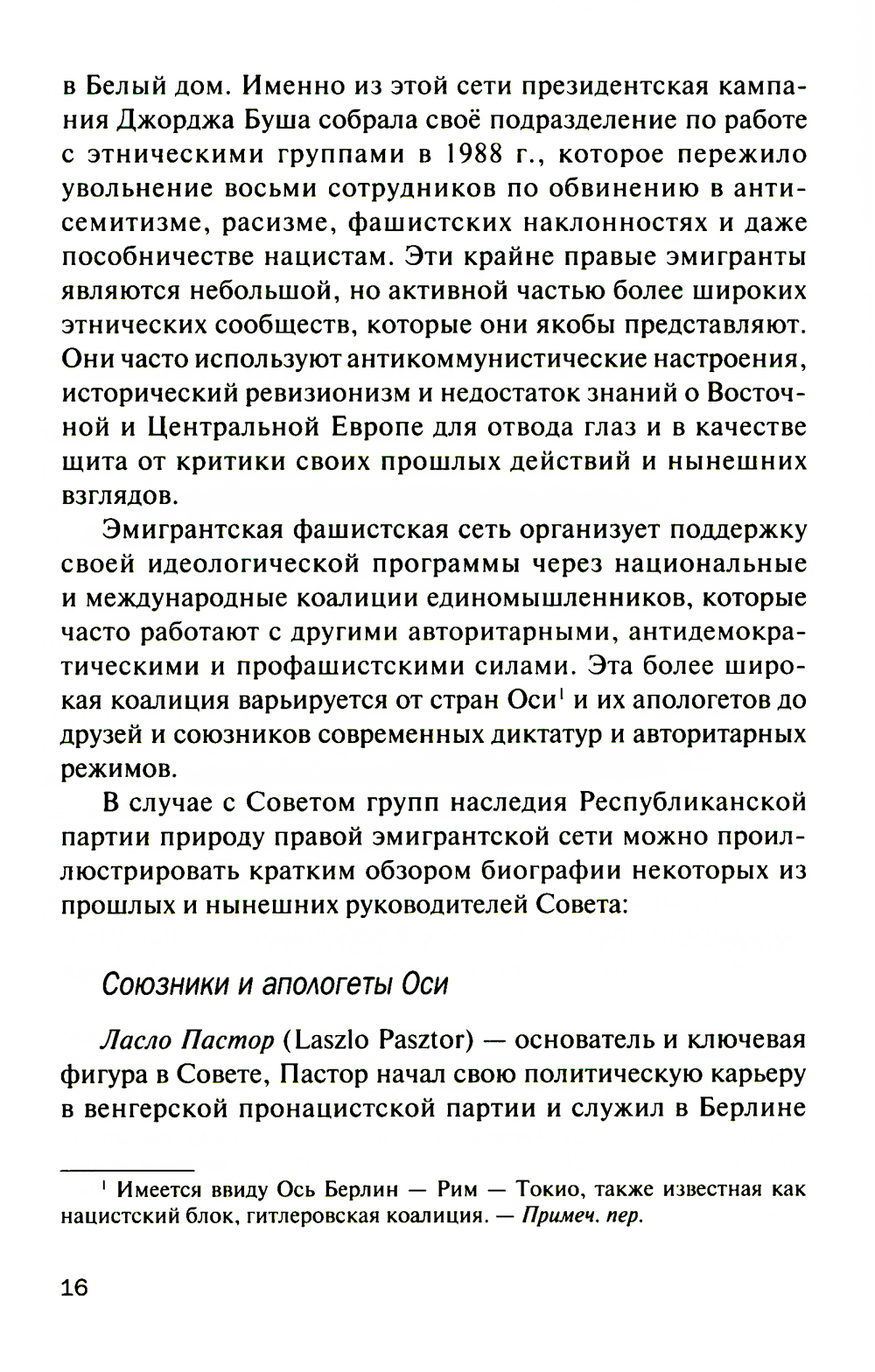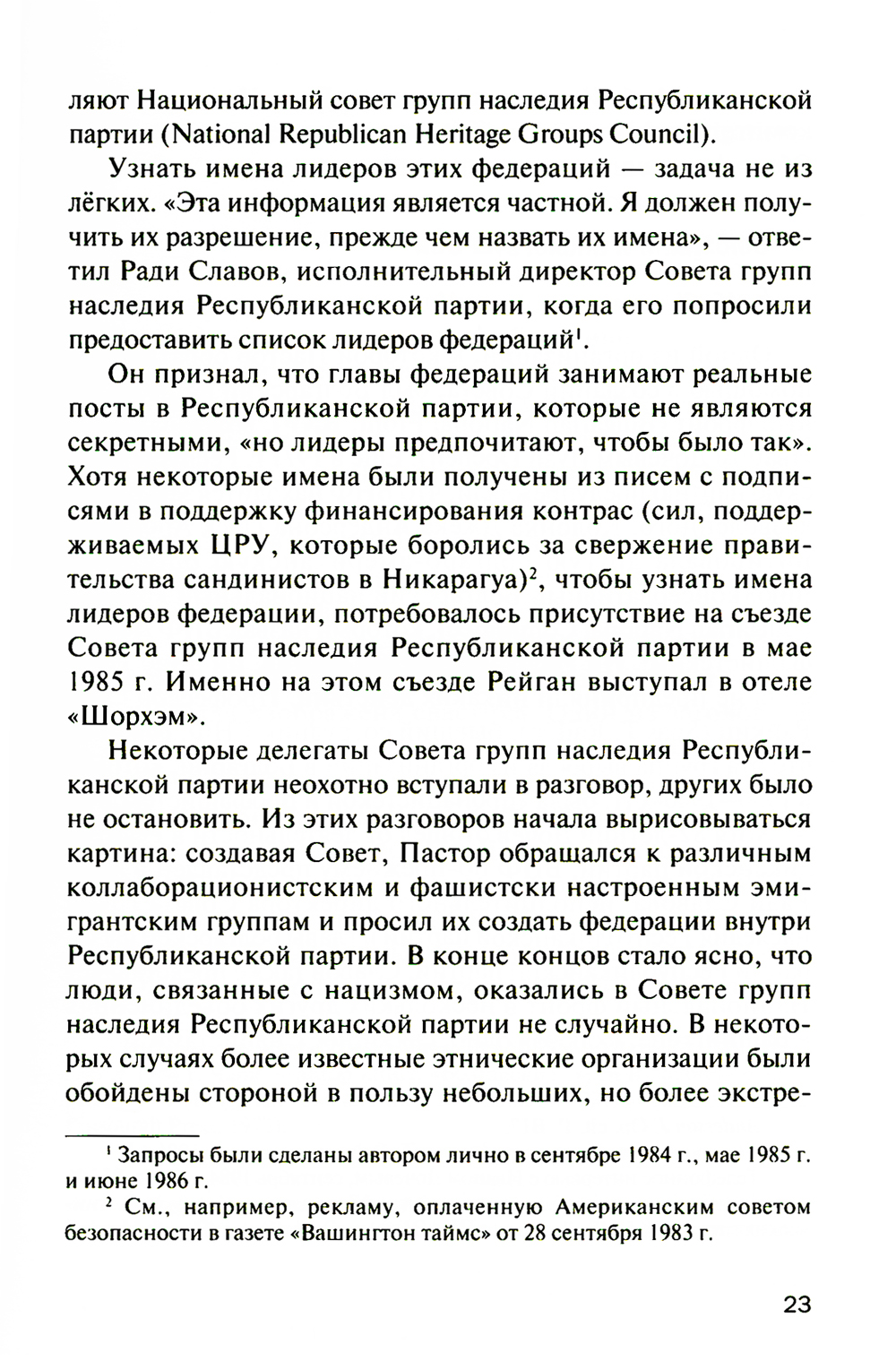 Американский исследователь-антифашист Расе Беллант раскрывает работу Республиканской партии и крайне правых милитаристских кругов США с антисоветскими эмигрантами и коллаборационистами для противодействия СССР и левым движениям в мире в эпоху правления Рональда Рейгана. Автор описывает интеграцию сторонников фашизма в эмигрантские политические организации при Республиканской партии, их функции во внутренней и внешней политике Соединённых Штатов Америки и результаты их работы, в частности сдвиг Республиканской партии вправо. Для текущего российского контекста книга ласт описание деятельности украинской диаспоры в США и позволяет оценить потенциал правого крыла Республиканской партии в решении конфликта на Украине.| Издательство | Кучково поле |