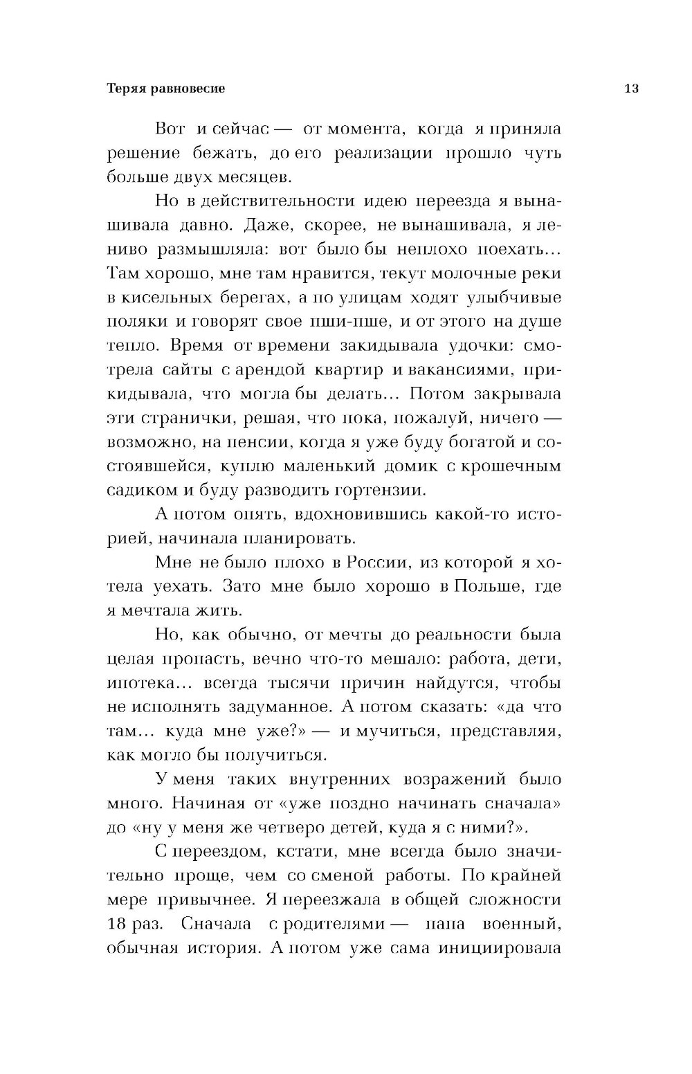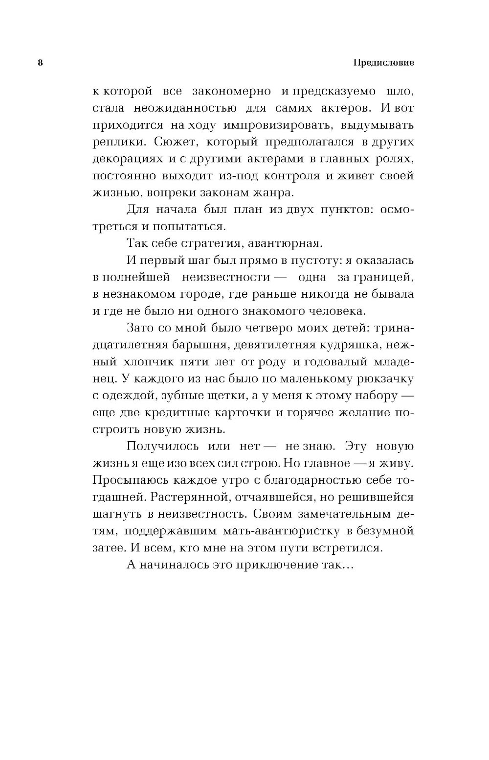 Убежать или остаться? Когда благополучная семейная жизнь вдруг превращается в кошмар, все ещё остаются сомнения. Простить предательство или уйти в никуда? Попытаться спасти отношения или сбежать? Но сломанная рука становится последней каплей. Схватив в охапку четверых детей, почти без денег, смутно представляя, где и на что будет жить, Ирена решается на отчаянный шаг. Откровенный и пронзительный рассказ о бегстве в другую страну, полный испытаний, радостей, огорчений, смеха сквозь слезы, где все настоящее: старый дом с печкой, призраки прошлого, и новая любовь, которая побеждает всё. Реальная история, которая наглядно доказывает: не нужно ничего бояться: решаешь сжигать мосты - сжигай. Хочешь быть счастливой - будь.| Издательство | Эксмо |