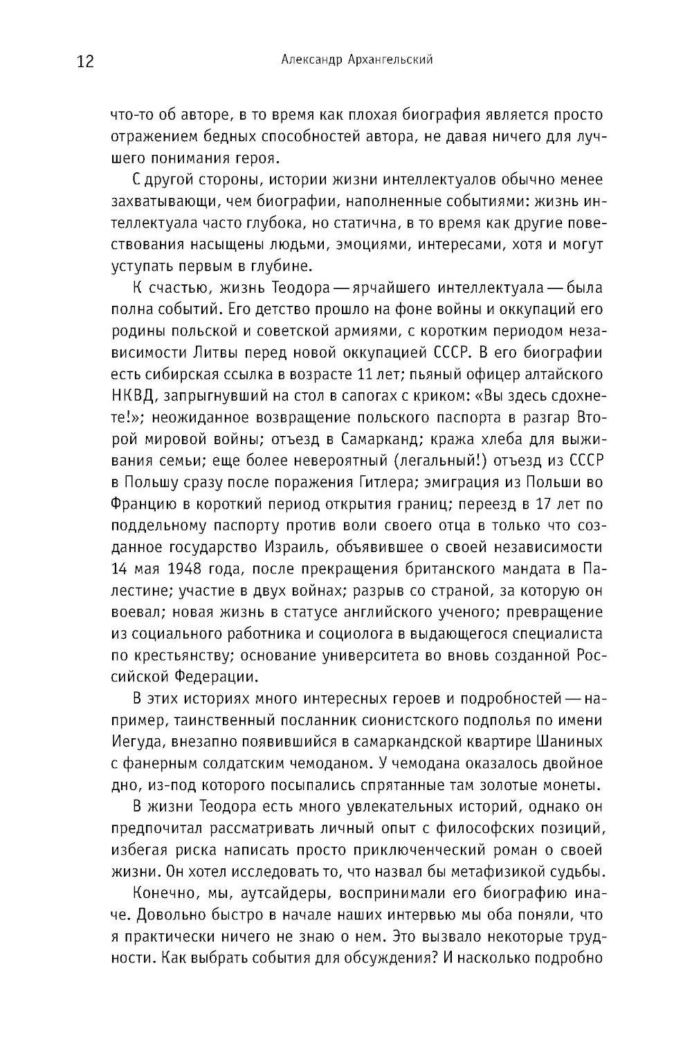 Теодор Шанин (1930-2020) - выдающийся британский социолог, профессор Манчестерского университета, признанный авторитет в крестьяноведении, исторической социологии и неформальной экономике. Им был основан один из первых частных вузов в постсоветской России - Московская школа социальных и экономических наук (неофициальное название «Шанинка»). Стремясь интегрировать российскую интеллектуальную традицию в международное научное сообщество, он сыграл большую роль в развитии новых форм академического образования в современной России. Биография Т. Шанина по событийности поразительна даже по меркам бурного ХX века: он родился в городе Вильно, входившем тогда в состав Польши, ребенком пережил Вторую мировую, после присоединении Литвы к СССР был выслан с матерью на Алтай, потом в Самарканд. В гетто погибли его младшая сестра и любимый дедушка. После долгих скитаний он вместе с родителями смог выехать в Польшу, а потом во Францию. В 1948 году, приписав к своим 17 лишние два года, он отправился добровольцем воевать за создание Израиля. После окончания Иерусалимского университета переехал в Великобританию, где состоялась его успешная академическая карьера. Автобиография для самого Теодора занимала важное место в ряду его научных трудов: автор рассматривает свой драматический личный опыт ушедшего столетия с философских позиций, исследуя то, что сам назвал бы метафизикой судьбы.| Издательство | Новое литературное обозрение |
