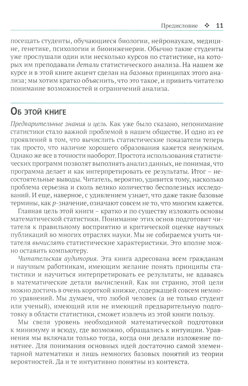 Издание пригодится тем, кто хочет понять принципы статистики и научиться интерпретировать ее результаты, не вдаваясь в математические детали вычислений. Для изучения материала требуется минимальный уровень математической подготовки.