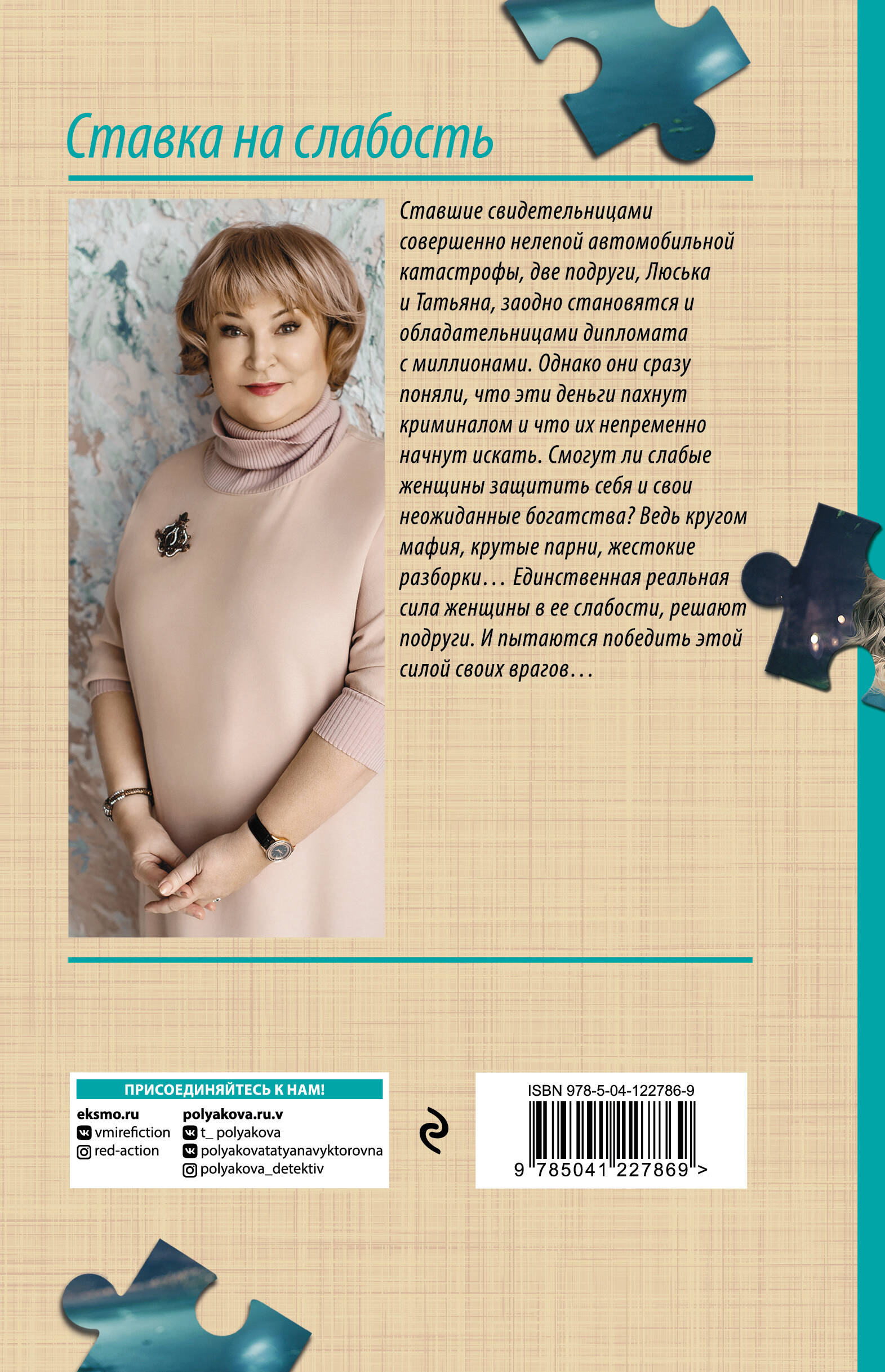 Ставшие свидетельницами совершенно нелепой автомобильной катастрофы, две подруги Люська и Татьяна заодно становятся и обладательницами дипломата с миллионами. Однако они сразу поняли, что эти деньги пахнут криминалом, и что их непременно начнут искать. Смогут ли слабые женщины защитить себя и свои неожиданные богатства? Ведь кругом мафия, крутые парни, жестокие разборки… Единственная реальная сила женщины в ее слабости, решают подруги. И пытаются победить этой силой своих врагов… Татьяна Полякова - один из самых популярных российских писателей в жанре детектива. За время писательской карьеры из-под ее пера вышло более 85 книг общим тиражом более 36 миллиона экземпляров. По свидетельствам читателей, романы Татьяны Поляковой - это «захватывающий сюжет и непредсказуемая развязка, обаятельные герои и невероятные приключения, легкий стиль и яркие диалоги».| Издательство | ООО "Издательство "Эксмо" |