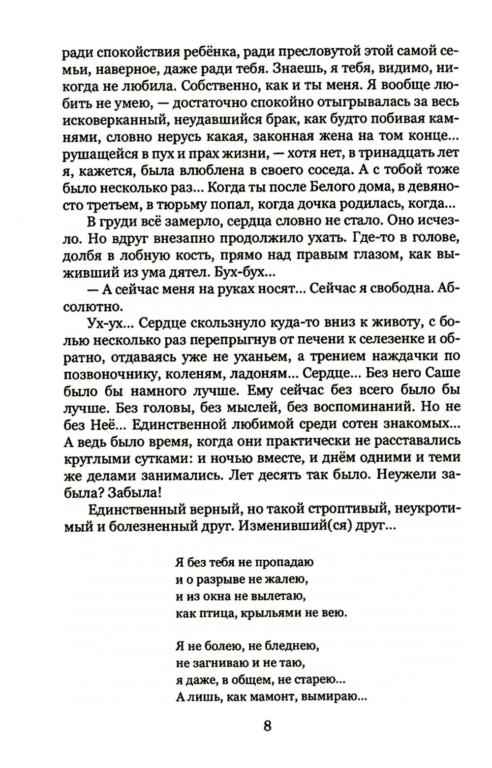 «Стеклянноглазая» - роман-завещание, написанный автором незадолго до ухода из жизни. Сергей Соколкин широко известен как поэт, публицист, общественный деятель, во время событий 1993 года был заключен в «Бутырку» по обвинению в мятеже. Как прозаик стал известен незадолго до смерти, с выходом дебютного романа «Ruskaя чурка», успевшего выдержать два издания. Второй (и последний!) роман - многогранный и многожанровый труд. Читателя ожидает яркий микс из актуальных социальных тем, личных мемуаров о столичной богеме и документалистики, созданной на основе бесед с представителями «силового блока». Это одновременно детектив, комедия, мелодрама и трагедия из жизни разных социальных групп. Автору, как знаменитому поэту-песеннику, удалось сохранить особые певучие лирические интонации, свойственные его оригинальному стилю. Роман основан на реальных событиях.| Издательство | Вече |