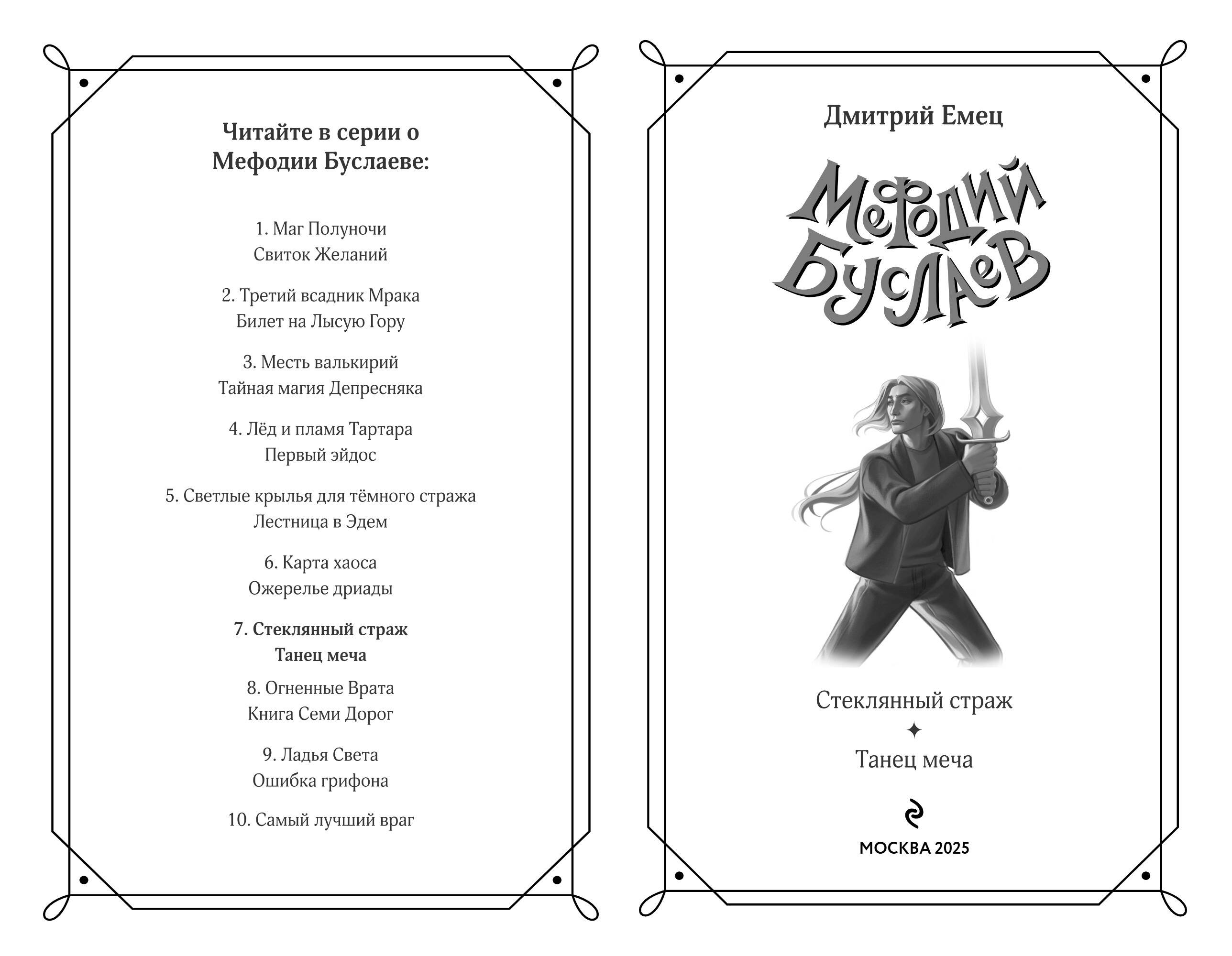Одна книга - две истории знаменитого российского писателя Дмитрия Емца о приключениях «Мефодия Буслаева» - «Стеклянный страж» и «Танец меча»! Книги о непростом выборе подростка, который неожиданно оказывается наследником Мрака. Но Мефодий Буслаев не хочет становиться новым Тёмным Властелином, ему предстоит пройти собственный путь! В тринадцатой книге, «Стеклянный страж», Прасковья может стать законной повелительницей Мрака, Мефодию возвращается память, Аида Плаховна пытается забрать сердце некромага, Дафна собирается обратно в Эдем, а барон Мрака должен предоставить голову Мефодия Лигулу. В четырнадцатой книге франшизы, «Танец меча», Мефодию вновь предстоит сразиться с Ареем, и эта битва может стать последней как для ученика, так и для учителя. Тёмные и Светлые ищут потерянные артефакты, а Ирка может навсегда потерять свои силы валькирии. Дмитрий Емец - известный писатель для детей и подростков, суммарный тираж его книг превысил 7 миллионов экземпляров! «Мефодий Буслаев» - серия книг, которая открыла волшебные миры миллионам подростков. Фанаты серии регулярно подтверждают это на встречах с автором.| Издательство | ООО "Издательство "Эксмо" |