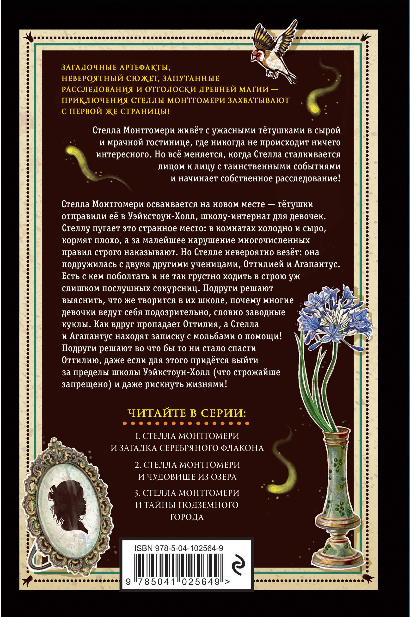 1. Книги о приключениях 11-летней Стеллы Монтгомери читают во всём мире! Они заполучили множество престижных литературных премий и стали бестселлерами! 2. Потрясающе оформленная обложка, много атмосферных иллюстраций по тексту, лихо закрученный сюжет - детектив, приключения, фэнтези для начинающих и семейная сага под одной обложкой! 3. Стелле скучно сидеть в своей комнате в мрачном сыром отеле. И однажды ночью она решила прогуляться тайком от тётушек и увидела, как один из постояльцев, мистер Филберт, спрятал что-то в оранжерее. Стелла решает взять загадочный пакет себе, и оказывается свидетельницей удивительных и страшных событий… 4. Дрессированные кошки, жуткие артефакты, друзья, готовые прийти на помощь, могущественные Тёмные Маги, погони и преследования, - и всё это на фоне мрачной архитектуры городка под названием Увядающий, растянувшегося на морском берегу… 5. Вы полюбите Стеллу Монтгомери, ведь она добрая, находчивая и смелая девчонка, и она докопается до истины!| Издательство | ООО "Издательство "Эксмо" |