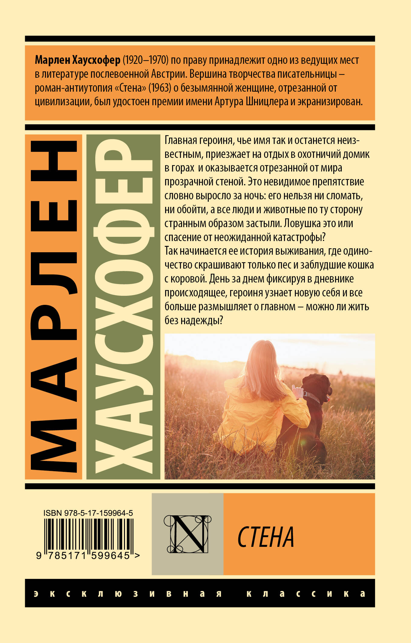 Главная героиня, чье имя так и останется неизвестным, приезжает на отдых в охотничий домик в горах и оказывается отрезанной от мира прозрачной стеной. Это невидимое препятствие словно выросло за ночь: его нельзя ни сломать, ни обойти, а все люди и животные по ту сторону странным образом застыли. Ловушка это или спасение от неожиданной катастрофы? Так начинается ее история выживания, где одиночество скрашивают только пес и заблудшие кошка с коровой. День за днем фиксируя в дневнике происходящее, героиня узнает новую себя и все больше размышляет о главном - можно ли жить без надежды?| Издательство | ИЗДАТЕЛЬСТВО "АСТ" |