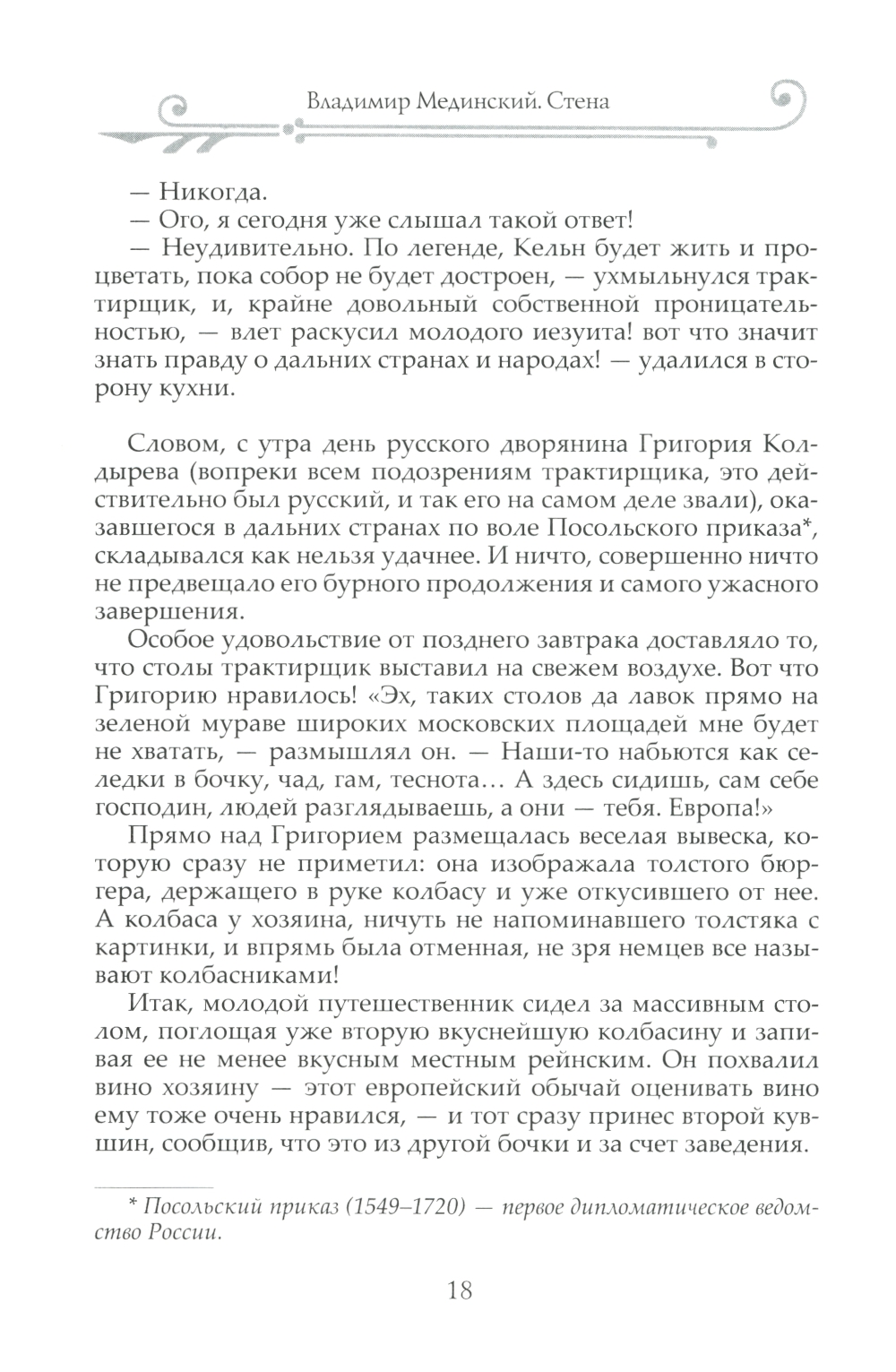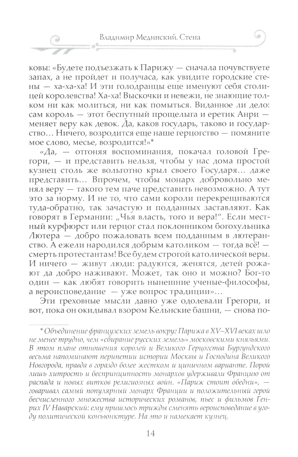 Представляем книгу «Стена» - первый роман автора «Мифов о России» и «Войны» Владимира Мединского. Читатель узнает знакомые темы, но теперь они оживают в авантюрном сюжете. Мединский возрождает жанр, который у нас почти не был раскручен... «Три мушкетера» - это Франция начала XVII века. Весь мир знает эту легенду. Мединский взял ту же самую эпоху, только у нас, в России (это как раз Смута) и написал приключенческий роман. Впрочем, история у Мединского - нечто иное, чем у Дюма. Если для великого французского романиста она была гвоздем, на который он вешал свою картинку, то для Мединского наоборот: вся картина - это история, а выдумки - от силы на гвоздик и рамку, ибо наша русская история дает такие фантастические сюжеты, что и выдумывать ничего не надо. Роман «Стена» - это русский Умберто Эко и отчасти наш православный Дэн Браун. На обложке - стена сохранившейся крепости, вокруг которой и происходит все действие...| Издательство | Просвещение-Союз |