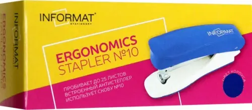 Степлер Ergonomics №10, до 25 листов, пластик, синий