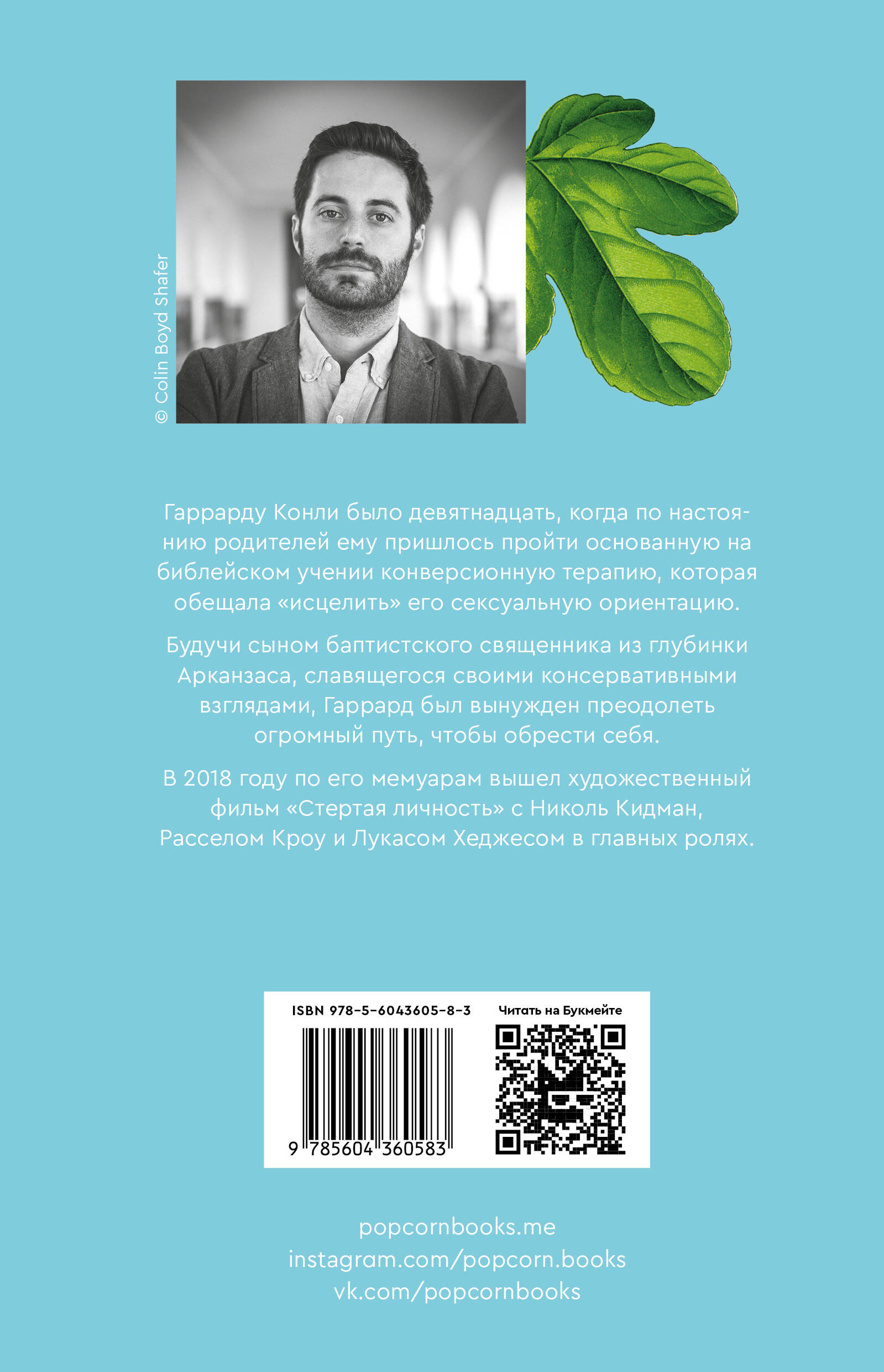 Гаррарду Конли было девятнадцать, когда по настоянию родителей ему пришлось пройти конверсионную терапию. Будучи сыном баптистского священника из глубинки Арканзаса, славящегося своими консервативными взглядами, Гаррард был вынужден преодолеть огромный путь, чтобы пережить последствия лечения. В 2018 году по его мемуарам вышел художественный фильм «Стертая личность» с Николь Кидман, Расселом Кроу и Лукасом Хеджесом в главных ролях.| Издательство | ИНДИВИДУУМ ПРИНТ ООО |