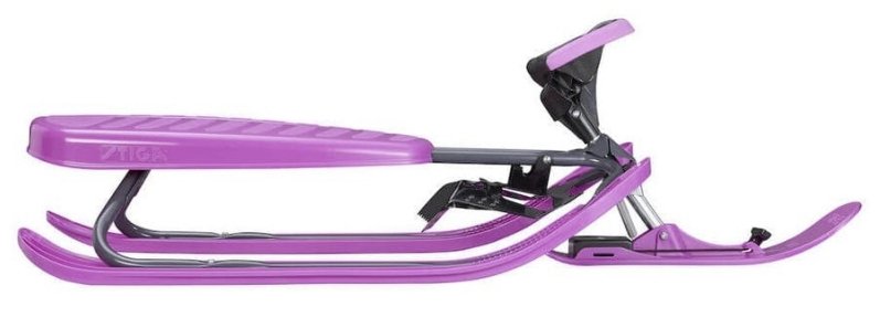 Прочная стальная рама и тормоза, руль и система Stiga Curve Ski System - для устойчивости и долговечности.