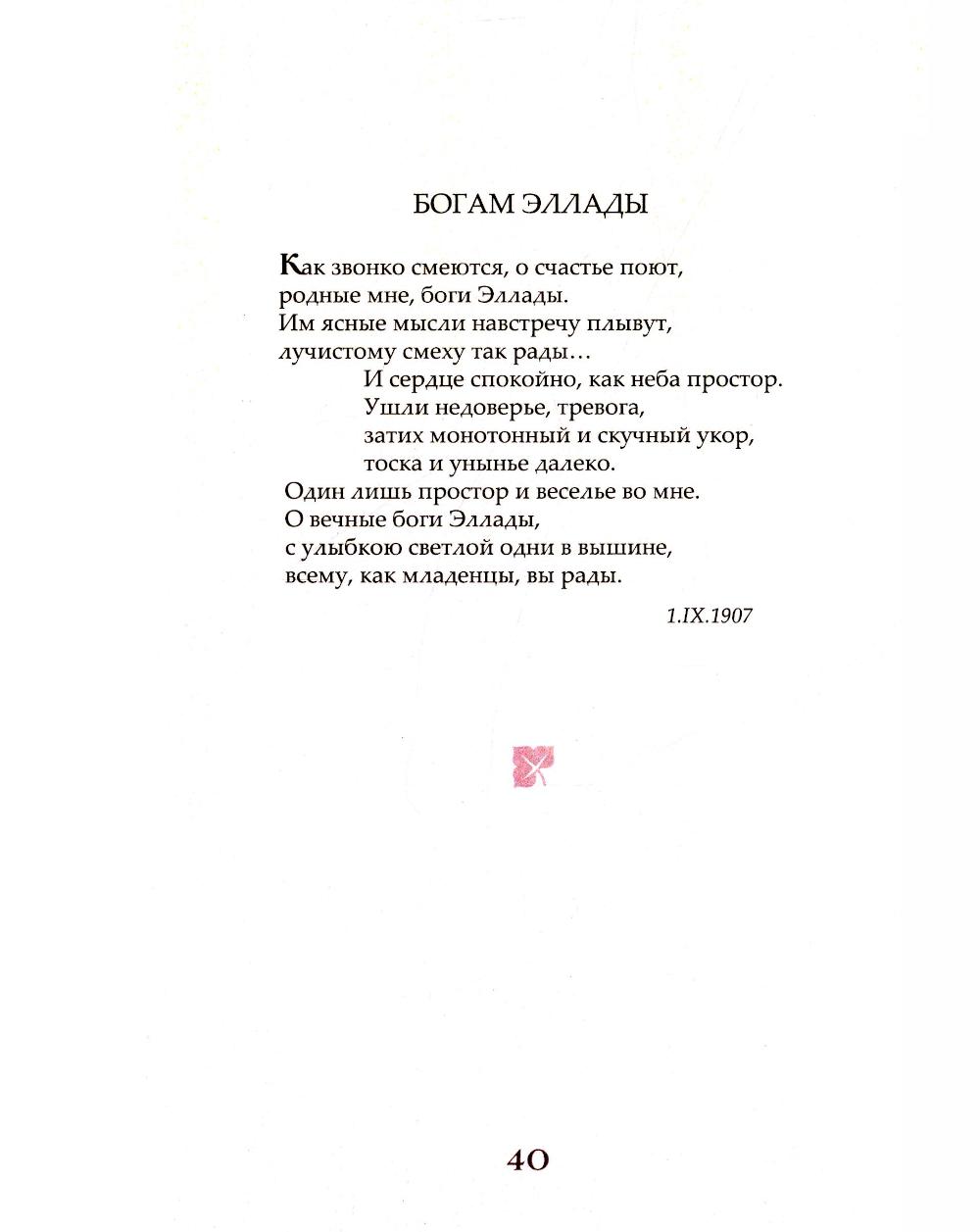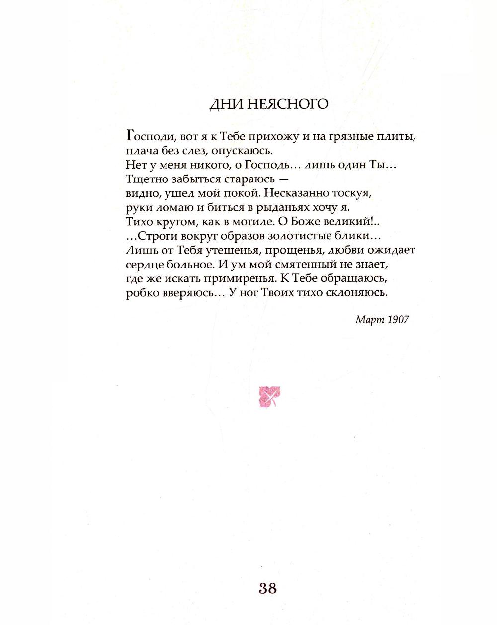 Имя художницы Ольги Александровны Флоренской (1890-1914), младшей сестры священника П.А. Флоренского, ученого, религиозного философа, известно историкам и знатокам культуры Серебряного века по публикациям ее переписки с Д.С. Мережковским и З.Н. Гиппиус, братом (о. Павлом), С.С. Троицким, В.Ф. Эрном. Единственный поэтический сборник Ольги Флоренской, хранящийся в семейном архиве, издается впервые. Книга сопровождена биографическим очерком, иллюстрирована редкими фотографиями из архива семьи Флоренских, а также графическими и живописными работами автора, в том числе ранее неизвестными. На обложке приводится оригинальное изображение тетради стихов О.А. Флоренской, выполненное её рукой.| Издательство | Изд."Пушкинский дом" |