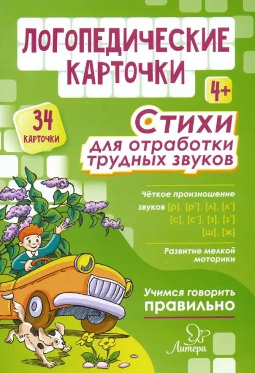 Логопедические карточки. Стихи для отработки трудных звуков. 4+ (34 карточки)