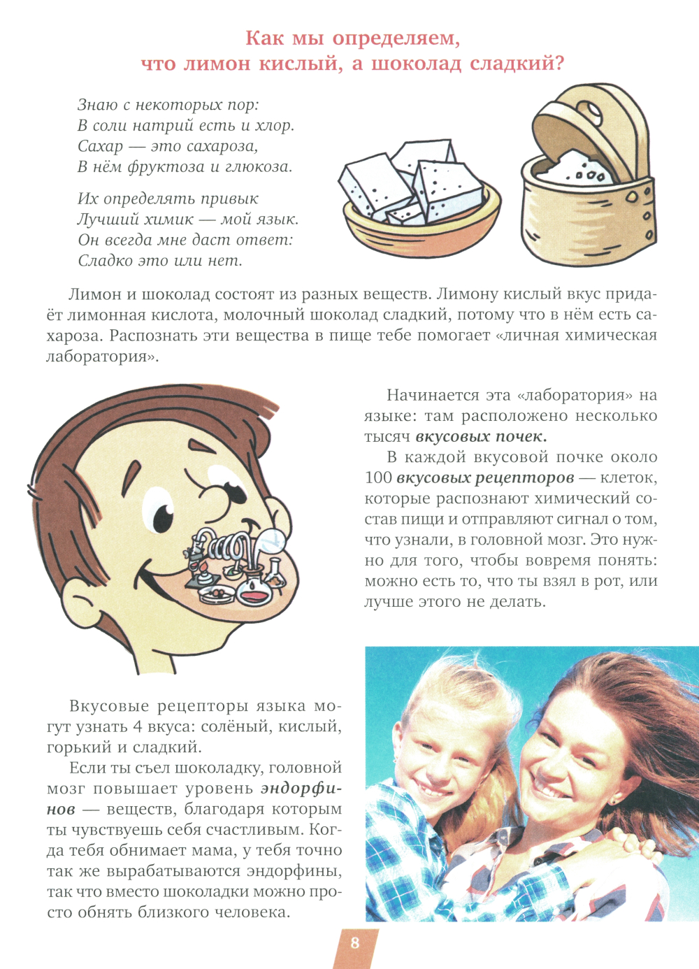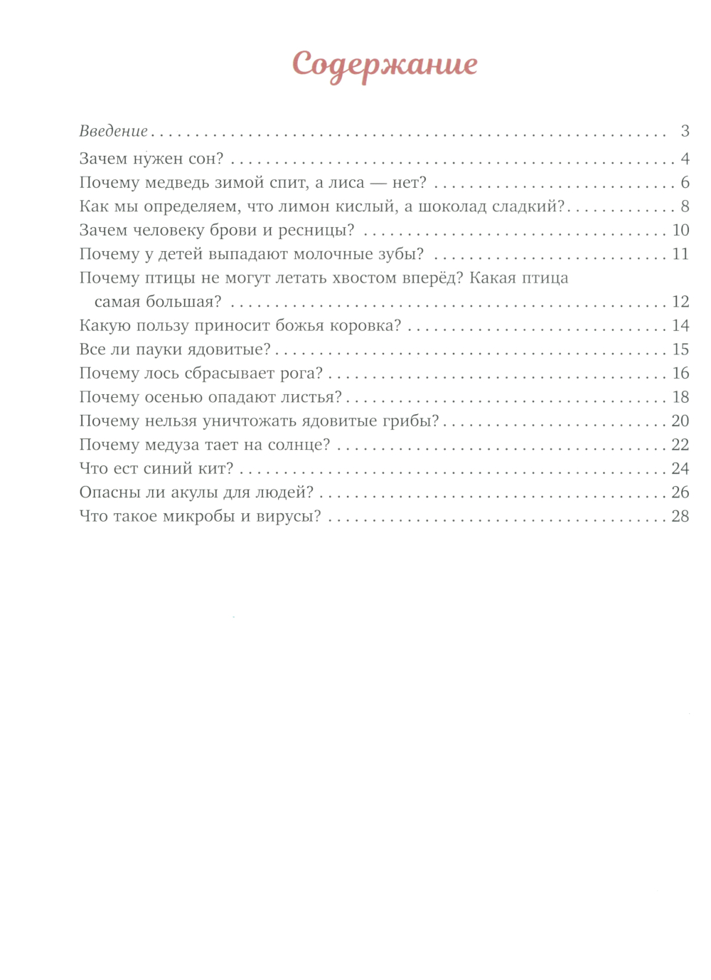 Книга поможет родителям объяснить ребенку, что такое микробы и вирусы, почему медуза тает на солнце, почему птицы не могут летать хвостом вперед и многое другое. В отличие от других энциклопедий, в данной книге к каждой статье есть стихотворение, которое привлечет внимание ребенка и поможет лучше запомнить информацию. Кроме того, в книге есть развивающие задания для ребенка, которые помогут удерживать интерес ребенка. Книга предназначена для чтения взрослыми детям старшего дошкольного возраста и младших школьников. Также она может быть использована как источник дополнительной информации к предмету «Окружающий мир».