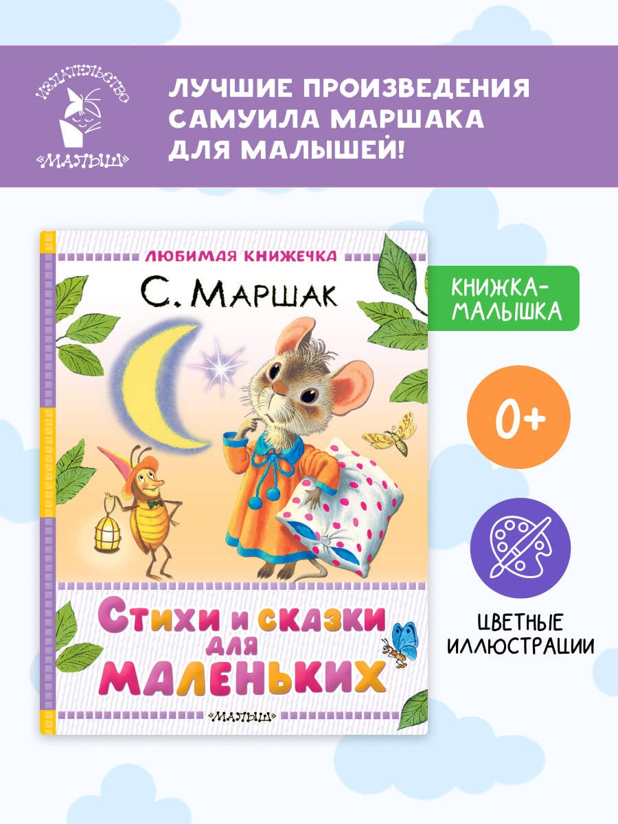 В этой маленькой книжке живёт много-много добрых стихов и сказок. Их написал знаменитый поэт-классик С. Маршак. А иллюстрации к ним нарисовали современные художники - Диана Лапшина, Сергей Бордюг и Наталья Трепенок. Вместе с героями произведений ребята сосчитают цыплят, запустят в небо мыльные пузыри, поиграют в мяч, отыщут потерянное колечко, а ещё подружатся с озорным котёнком, умным мышонком и тихим ёжиком.
