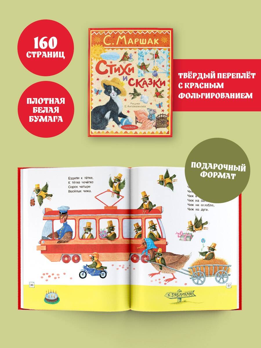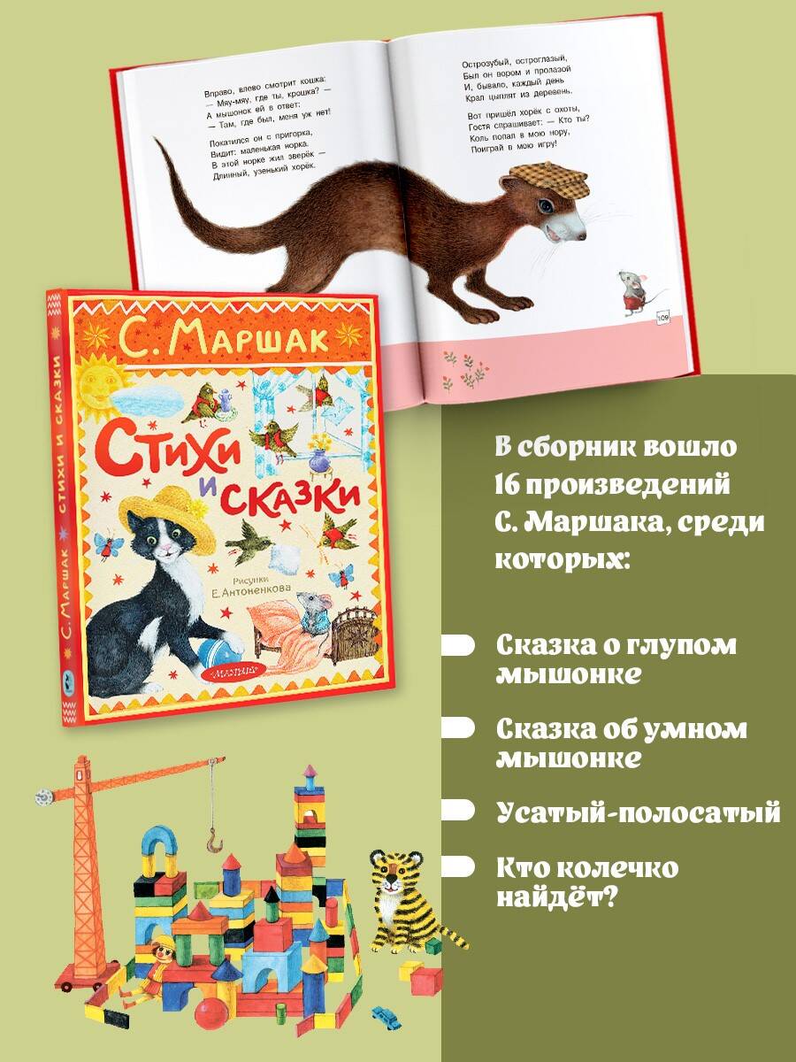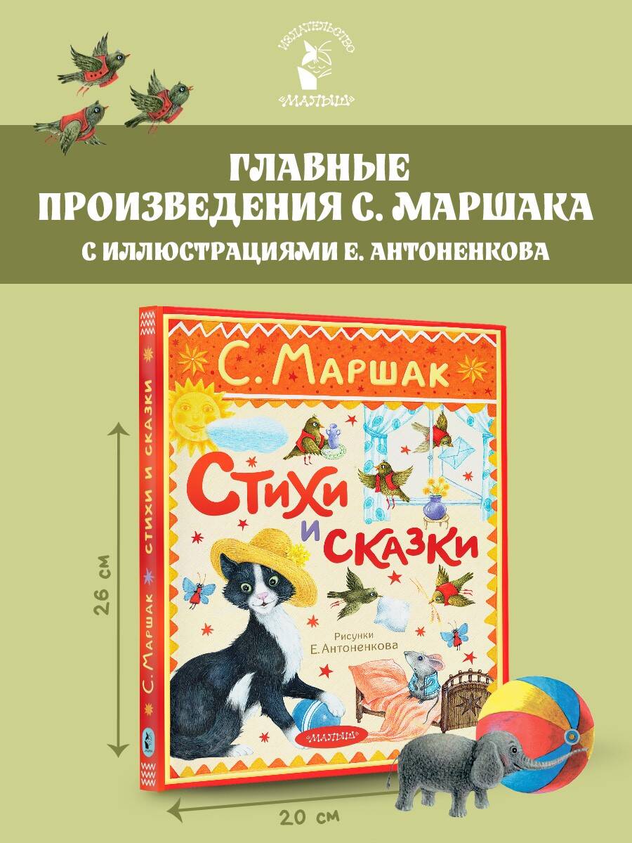 Малышам и малышкам большая книжка С. Маршака с великолепными иллюстрациями Евгения Антоненкова! Озорные и весёлые стихотворения, поучительные сказки с захватывающим сюжетом, огромные и яркие иллюстрации привлекут внимание деток. Малыши с удовольствием послушают про весёлый звонкий мяч, познакомятся с усатым-полосатым, глупым и умным мышатами, помогут найти колечко Оленьке. А когда научатся читать, то с удовольствием прочтут уже сами свои любимые стихи и сказки С. Маршака!| Издательство | Издательство "АСТ" |