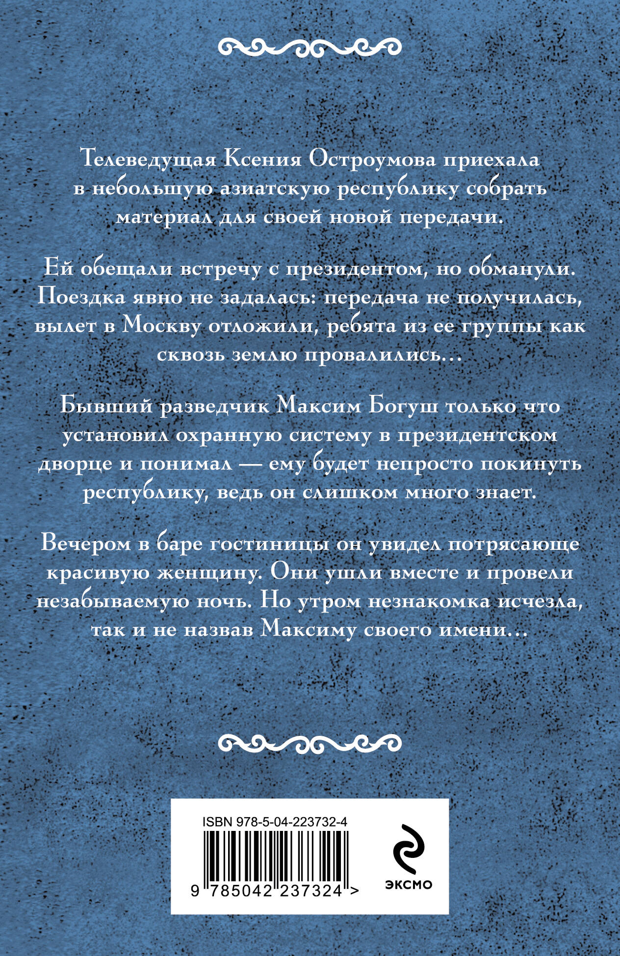 Телеведущая Ксения Остроумова приехала в небольшую азиатскую республику, чтобы собрать материал для своей новой передачи. Ей обещали встречу с президентом, но обманули. Поездка явно не задалась: передача не получилась, вылет в Москву отложили, ребята из ее группы как сквозь землю провалились… Бывший разведчик Максим Богуш только что установил охранную систему в президентском дворце и понимал - ему будет непросто покинуть республику, ведь он слишком много знает. Вечером в баре гостиницы он увидел потрясающе красивую женщину. Они ушли вместе и провели незабываемую ночь. Но утром незнакомка исчезла, так и не назвав Максиму своего имени…
