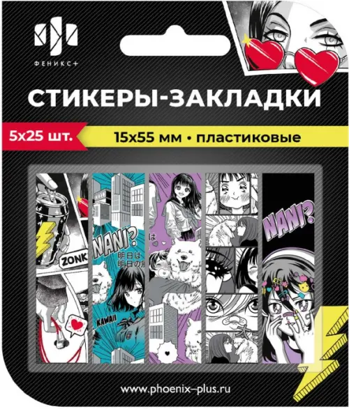 Стикеры-закладки пластиковые, 15х55 мм, 125 шт., ДЕВУШКА (материал: пластик цвет: зелёный, серый, фиолетовый; кол-во цветов: 5, кол-во каждого цвета: 25, форма: прямоугольная, декор: полноцветная печать; наличие диспенсера: нет, особенности: подложка прозрачная из ПВХ; индивидуальная упаковка: подложка с европодвесом из мелованного картона + ПЭТ-пакет)