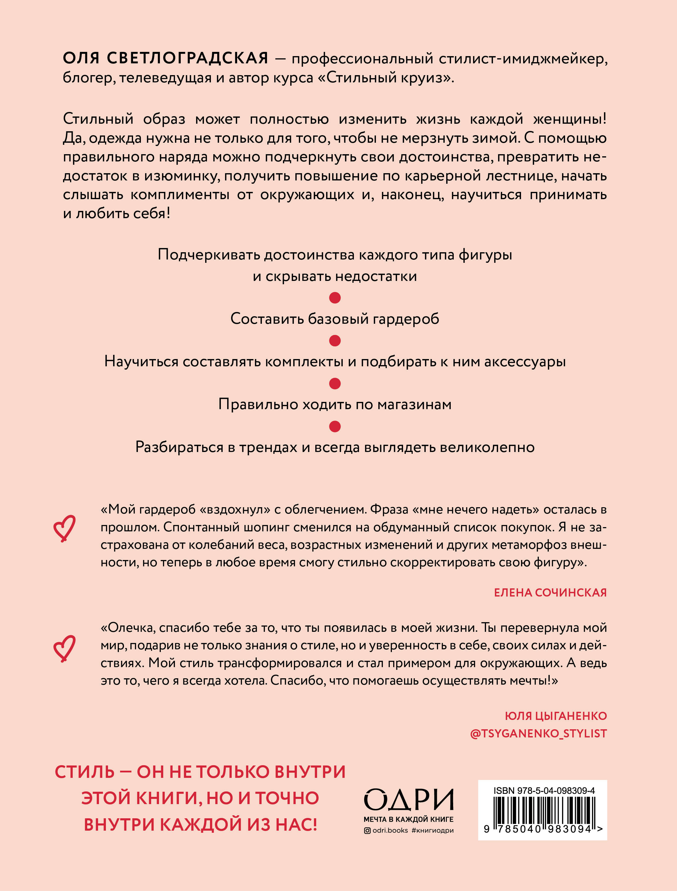 Стильный образ может полностью изменить жизнь каждой женщины! Да, одежда нужна не только для того, чтобы не мерзнуть зимой. С помощью правильного наряда можно подчеркнуть свои достоинства, превратить недостаток в изюминку, получить повышение по карьерной лестнице, начать слышать комплименты от окружающих и, наконец, научиться принимать и любить себя!| Издательство | ООО "Издательство "Эксмо" |