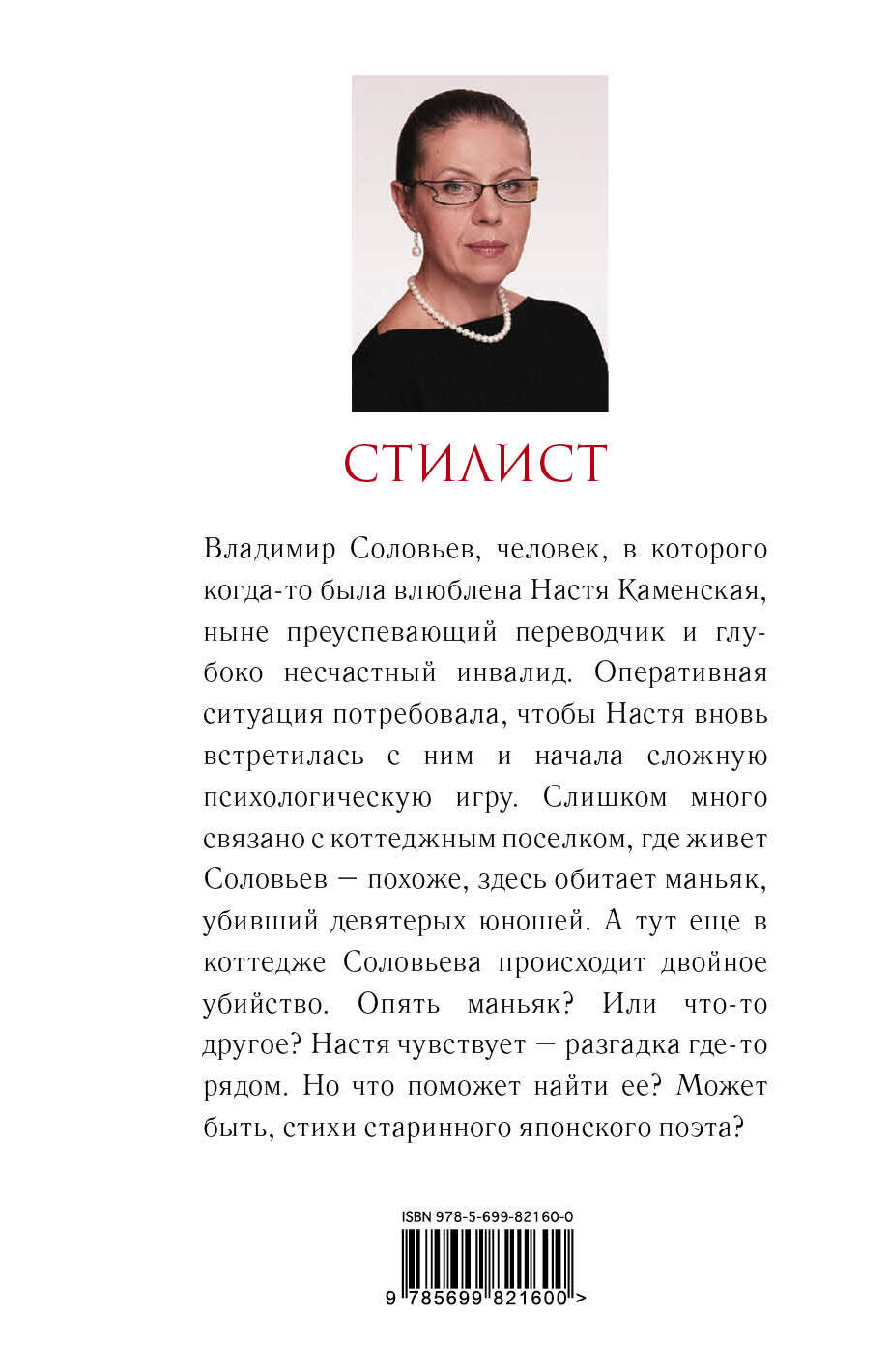 Владимир Соловьев, человек, в которого когда-то была влюблена Настя Каменская, ныне преуспевающий переводчик и глубоко несчастный инвалид. Оперативная ситуация потребовала, чтобы Настя вновь встретилась с ним и начала сложную психологическую игру. Слишком много связано с коттеджным поселком, где живет Соловьев, - похоже, здесь обитает маньяк, убивший девятерых юношей. А тут еще в коттедже Соловьева происходит двойное убийство. Опять маньяк? Или что-то другое? Настя чувствует - разгадка где-то рядом. Но что поможет найти ее? Может быть, стихи старинного японского поэта? «Маринина не только пишет детективные романы, но и отвечает на вечные вопросы. Автор относится к своим читателям как добрый и опытный учитель к ученикам, которые нуждаются в поддержке, подсказке и направлении на верный путь. Оптимистичная и практичная в своей дидактике, Маринина ставит перед собой вопрос "как жить" и старается помочь читателю найти свой путь к лучшей жизни в сегодняшнем мире. Своими детективами Маринина пишет современный роман "воспитания чувств": основная цель автора - воспитание посредством развлечения». - Анатолий Вишевский, Гринелльский колледж, США «Многие романы Александры Марининой в России экранизированы, а в Германии переработаны в радиопьесы. Исходя из того, что цель этих обработок - захватывать зрителей и слушателей таким же образом, как захвачены читатели, то фильм и радиопьеса являются не только дополнительными художественными произведениями, но и интересными интерпретациями, которые проникли в тайну успеха Александры Марининой». - Сара Хэги, Кельнский университет, Германия «В диалогах художественной и тривиальной литературы можно обнаружить разные способы стилизации "устности", чтобы достичь впечатления спонтанного разговора. Обиходная речь в романах А. Марининой отличается необыкновенно высокой степенью оживленности, что выражается, между прочим, в разных формах обращения собеседников, в различных оттенках вежливости и в эмоциональности используемой лексики». - Вольфганг Штадлер, Университет имени Леопольда Францена, Инсбрук, Австрия| Издательство | ООО "Издательство "Эксмо" |