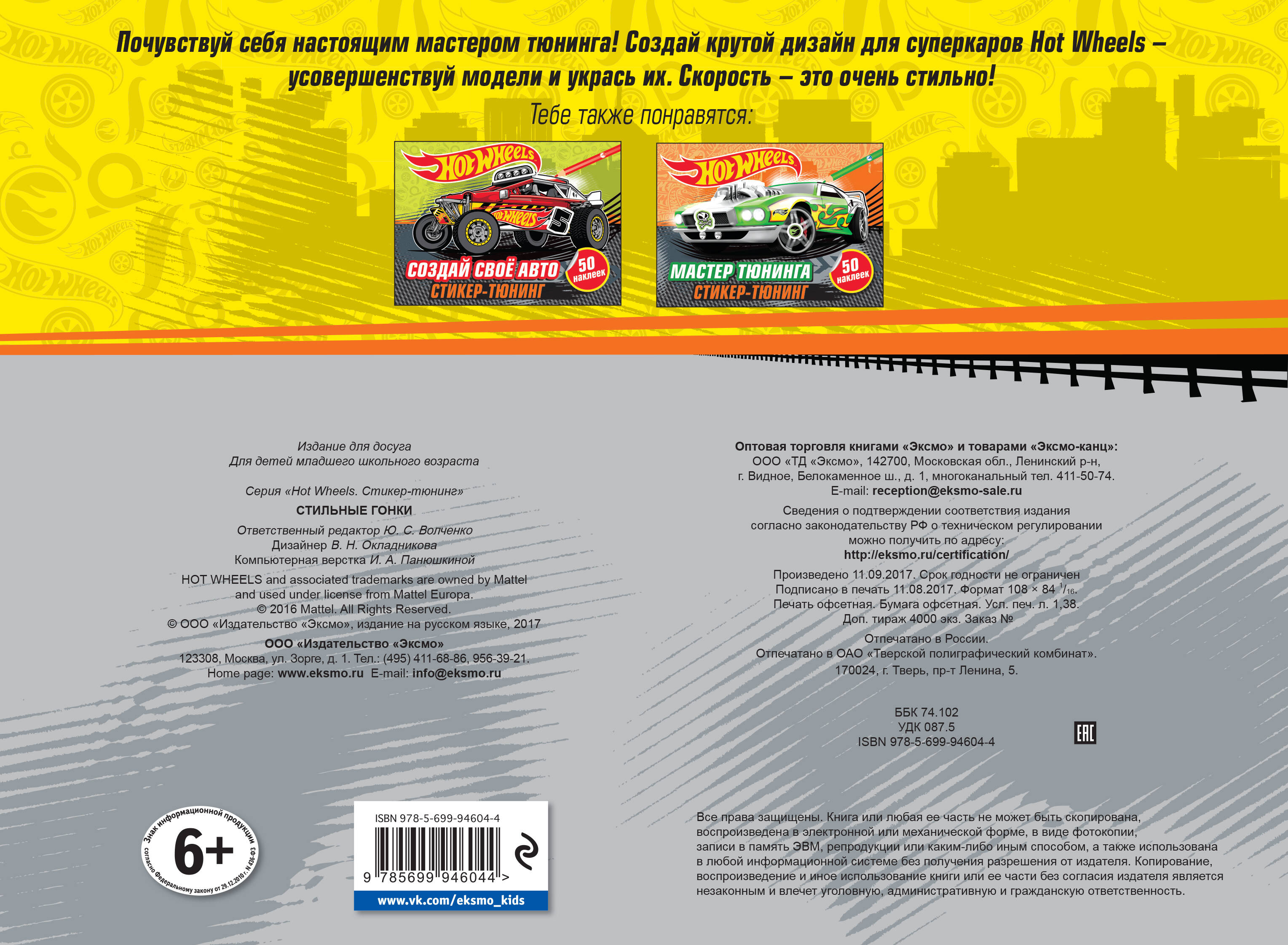 Креативный вызов для настоящих гонщиков! Создавай крутой дизайн для суперкаров Hot Wheels - усовершенствуй модели и укрась их. В твоем распоряжении бамперы, спойлеры, аэрография и не только! Раскрашивай машинки и украшай их стильными наклейками!| Издательство | ООО "Издательство "Эксмо" |