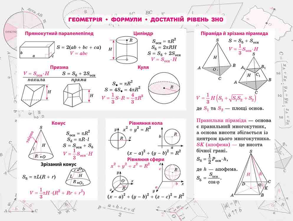 Стікербук. Геометрія. 100 найважливіших формул до ЗНО