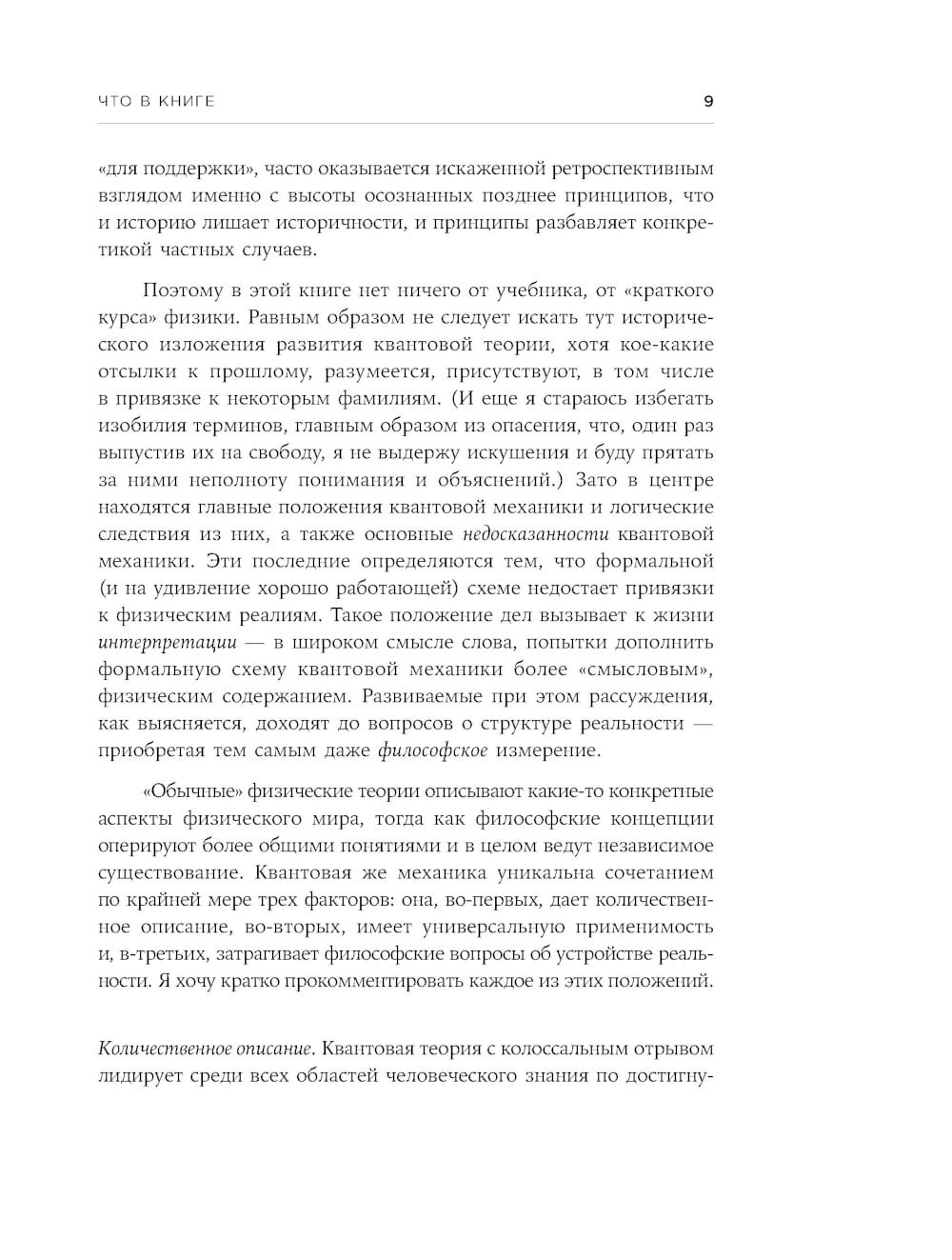Квантовая механика - самый точный из известных человечеству способов описания мира на той фундаментальной глубине, которая определяет его структуру, но недоступна прямому наблюдению. Только благодаря квантовой природе удается существовать атомам, людям, звездам и почти всему остальному. Квантовые эффекты, которые уже задействованы в технологиях, максимально приближаются к нашим представлениям о чудесах. Но в силу самого своего устройства квантовая механика оставляет недосказанности в отношении поведения квантовых объектов и свойств реальности. На заре второго квантового столетия Алексей Семихатов, автор бестселлера «Всё, что движется», предлагает последовательное изложение современного состояния квантовой механики. Каковы принципиальные особенности квантового мира и какой ценой их можно примирить с интуицией? По каким правилам развиваются квантовые системы во времени и как в это развитие вмешиваются вероятности? Как различные интерпретации квантовой механики подталкивают нас к глубоко философским заключениям о возможном устройстве реальности - от параллельных вселенных до разрывов в восприятии? И как привычная нам реальность возникает из чуждой ей квантовой? Что все-таки делает квантовый компьютер, что и как вовлекается в квантовую запутанность и почему квантовым объектам приходится существовать без некоторых свойств? Оказывается, о квантовой механике можно всерьез говорить понятным языком, а обсуждение ее сложных мест делает этот разговор только интереснее.| Издательство | Альпина нон-фикшн |