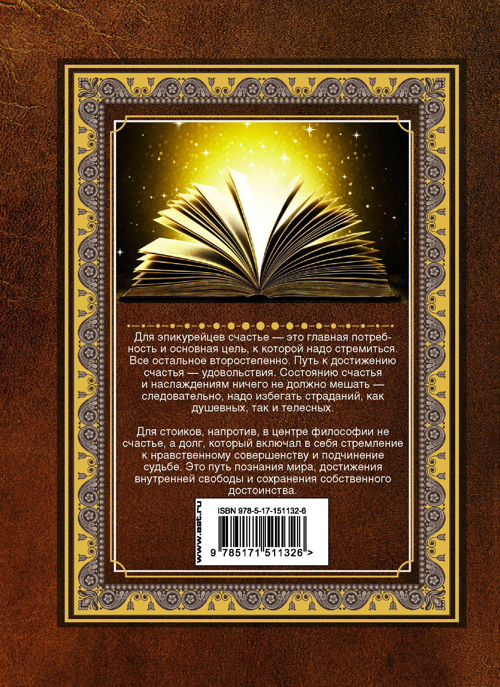 Стремление человека к счастью через получение удовольствия - основной принцип эпикуреизма - философского учения, в основу которого легли идеи Эпикура. Достичь этого возможно, избегая душевных и телесных страданий. Известные эпикурейцы - римский поэт, философ Тит Лукреций Кар и древнеримский поэт Гораций. Главным оппонентом эпикурейцев и основателем стоицизма является Зенон Китийский. В центре его философии - понятие долга, включающее в себя стремление к нравственному совершенствованию и подчинение судьбе. Среди известных последователей стоицизма выделяются римский император Марка Аврелий, римский философ, государственный деятель Сенека и древнегреческий философ Эпиктет. Собранные в этой книге цитаты из трудов стоиков и эпикурейцев позволят взглянуть на жизнь с разных полюсов - удовольствия и долга.| Издательство | ИЗДАТЕЛЬСТВО "АСТ" |