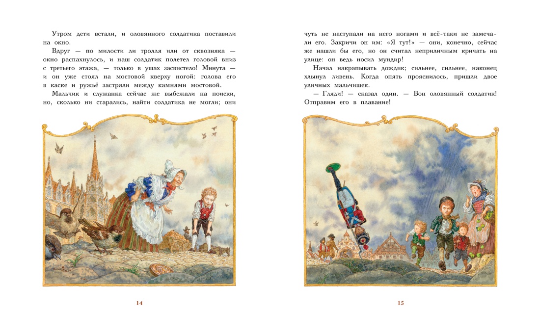 Сказки Ханса Кристиана Андерсена переведены на все языки и выдержали множество изданий. Их герои стали непременными спутниками любого детства. Оловянный солдатик из одноимённой сказки Андерсена сделался символом мужества и твёрдости духа. Какие бы сюрпризы ни приготовила ему судьба, он дер жался стойко: ружьё на плече, голова прямо, грудь вперёд! И с честью вышел из всех испытаний. Петербургский художник Антон Ломаев отводит сказкам Андерсена первое место среди книг, которые нравились ему в детстве. Он иллюстрирует истории великого сказочника с вдохновением и неистощимой выдумкой. На страницах этой книги живёт своей особой жизнью не только множество забавных игрушек, но и целое симпатичное семейство, за сказочными буднями которого так интересно наблюдать.| Издательство | Азбука |