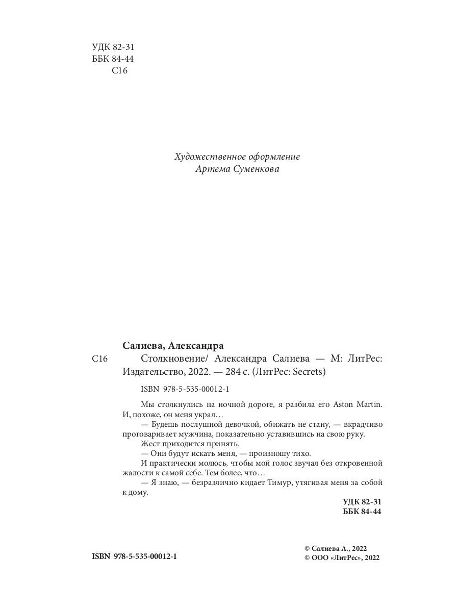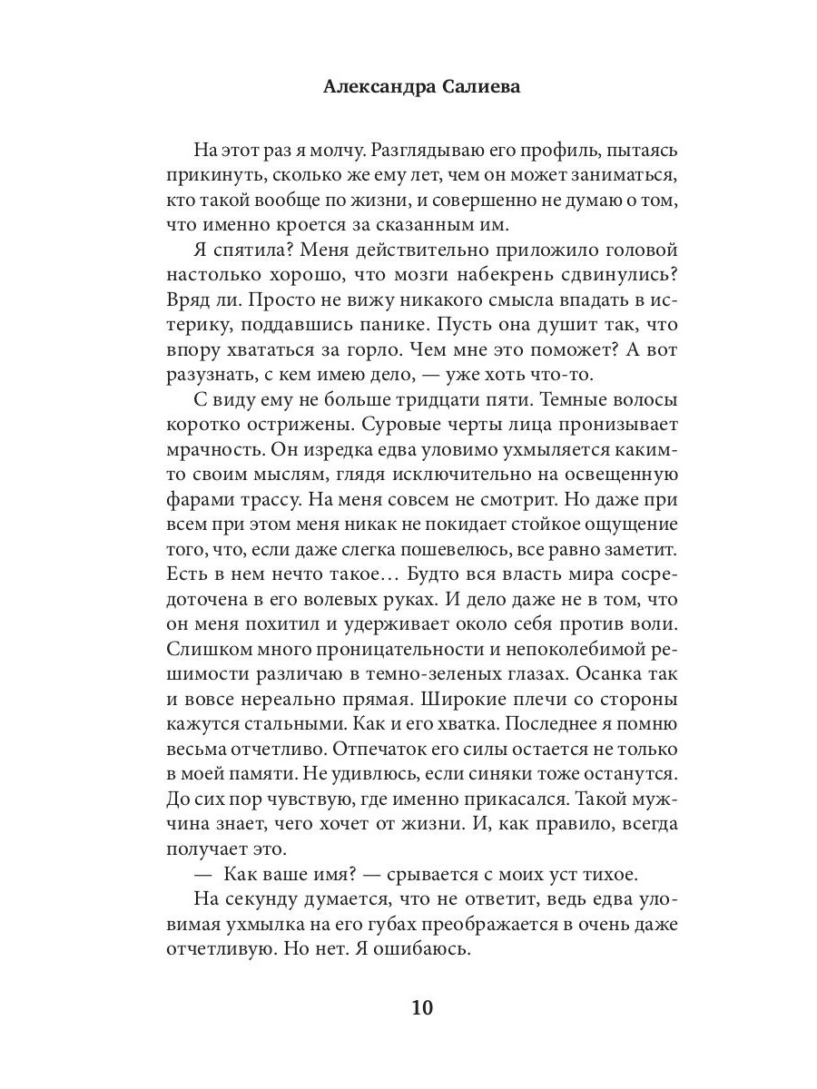 Мы столкнулись на ночной дороге, я разбила его Aston Martin. И, похоже, он меня украл… - Будешь послушной девочкой, обижать не стану, - вкрадчиво проговаривает мужчина, показательно уставившись на свою руку. Жест приходится принять. - Они будут искать меня, - произношу тихо. И практически молюсь, чтобы мой голос звучал без откровенной жалости к самой себе. Тем более, что… - Я знаю, - безразлично кидает Тимур, утягивая меня за собой к дому.| Издательство | Т8 RUGRAM |