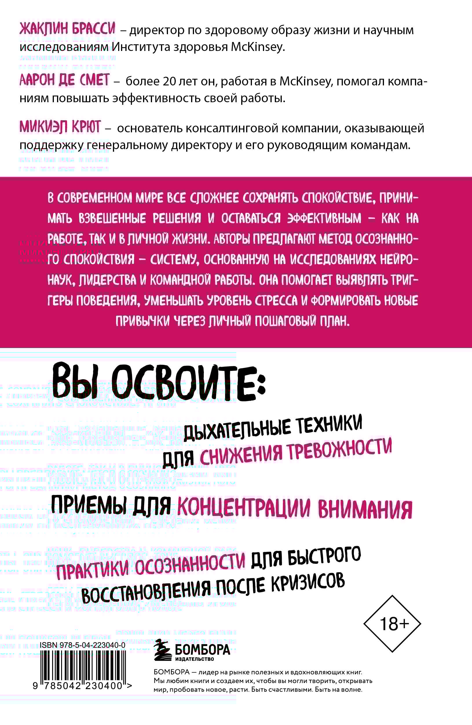 В современном мире всё сложнее сохранять спокойствие, принимать взвешенные решения и оставаться эффективным - как на работе, так и в личной жизни. Авторы предлагают метод осознанного спокойствия - систему, основанную на исследованиях нейронаук, лидерства и командной работы. Она помогает выявлять триггеры поведения, уменьшать уровень стресса и формировать новые привычки через личный пошаговый план. Вы освоите: · дыхательные техники для снижения тревожности; · приемы для концентрации внимания; · практики осознанности для быстрого восстановления после кризисов. Эти инструменты помогут обрести внутреннее равновесие, управлять энергией и превратить спокойствие в главный ресурс для успеха.| Издательство | ООО "Издательство "Эксмо" |